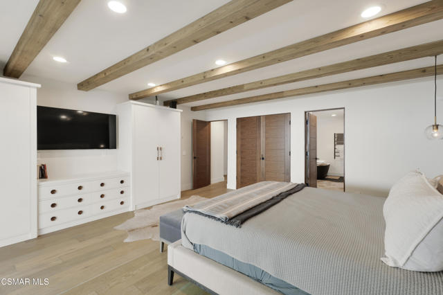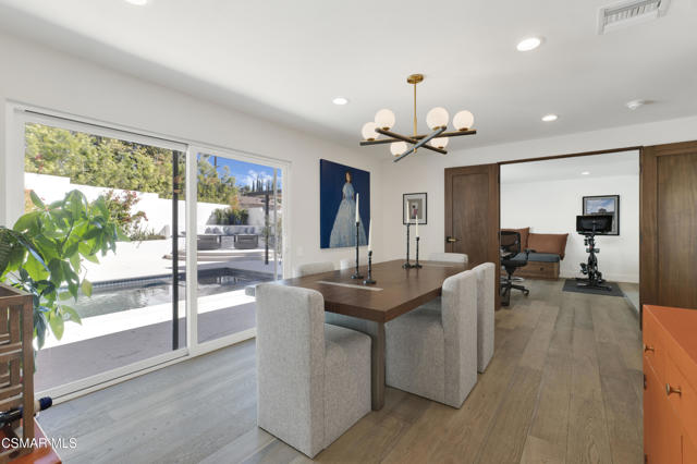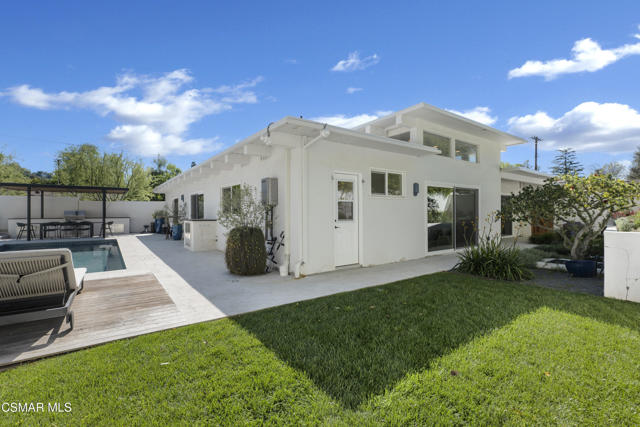 Stunning one story Mid- century completely remodeled, corner single story home! You are welcomed into an elegant, light and bright living room with high ceilings & recessed lighting. Beautifully upgraded kitchen with a new island that features stone/waterfall top and walnut components and new cabinets throughout. All the bathrooms have been beautifully remodeled with custom vanities, toto toilets, new lighting and more. All of the interior doors have been upgraded to new solid core walnut with new hardware. This home also features, new A/C ducting, new roof, copper plumbing, beautiful wood floors, a new tankless water heater, and a nicely manicured backyard. A brand new custom pool with an auto-recessed built in cover was just completed. Enjoy the lovely outdoors with new sandstone paver decking, a firepit and sitting area and a built in bbq unit. Located south of the boulevard and minutes to the 'Commons' in Calabasas. Less than 15 miles from the beach and close to great schools. Great location! No HOA fees! Don't let this one go!