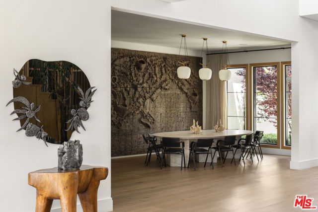 Tucked behind custom gates and mature hedging on one of the widest lots in the flats of North Bundy - with 120 feet of frontage - this modern Brentwood estate delivers an extraordinary blend of privacy, design, and innovation. The main residence offers 5 bedrooms and 7 bathrooms, plus a versatile office/den/nursery, while a fully equipped detached guest house with its own bedroom and bathroom brings the total to 6 beds and 8 baths. Purposefully designed for both entertaining and daily comfort, the home opens to a resort - style backyard with a large, private pool, mature landscaping, an outdoor kitchen, and a fire pit - your own secluded sanctuary. The expansive lot also offers space to add a sports court on the side of the home. A spacious 2-car garage is complemented by gated parking for up to four additional vehicles. Security is next-level, featuring an AI-powered camera system, automated perimeter alerts after hours, and 24/7 armed patrol service already in place - ensuring peace of mind without compromise. Inside, expansive open-plan living spaces connect effortlessly to the outdoors. The main kitchen stuns with dual islands, all Miele built-in appliances - including an espresso station, refrigerator, oven, microwave, and dual dishwashers - and a sleek frameless integrated stovetop. Discreetly tucked away, the chef's kitchen is ideal for hosting or staff use, outfitted with an 8-burner Wolf range, additional Miele refrigerator and freezer, and a spacious walk-in pantry. A climate-controlled wine rack adds sophistication and function for wine collectors. For elevated living and entertaining, the home includes a state-of-the-art private theater with over $100K in hidden, professional-grade AV equipment and acoustically transparent finishes - creating a truly immersive cinematic experience. Upstairs, a sun-drenched hallway opens to a spacious deck for second-level indoor-outdoor living. The primary suite features its own private terrace with fireplace and a walk-in closet, complete with custom cabinets and island with key-card access drawers for valuables. Three additional guest bedrooms upstairs each offer en-suite baths and custom closets- ideal for balanced family living. Smart home integration elevates every detail, with wall-mounted displays and app-based controls for lighting, climate, sound, and security. A roof-mounted cell antenna boosts signal, and Wi-Fi boosters ensure strong, consistent coverage throughout the property. Custom furniture and collectible lighting fixtures - meticulously curated to complement the home's design - are also available for purchase.