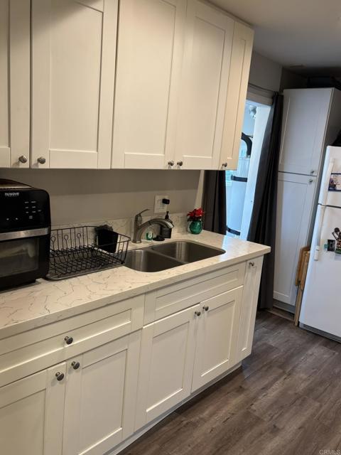 A unique opportunity hidden away in the neighborhood. Exterior paint scheme is clean and welcoming. Newer windows and central heat and air. Nicest front door on the block with a private gate. Primary structure is approx 735 sq ft has 2 bedrooms, a full bathroom, a open family room, nice indoor laundry area, a kitchen with stainless steel appliances. There is a one car garage that is approx 250 sq ft converted to a 1 bedroom, w/ 3/4 bathroom that has a tiled shower.
