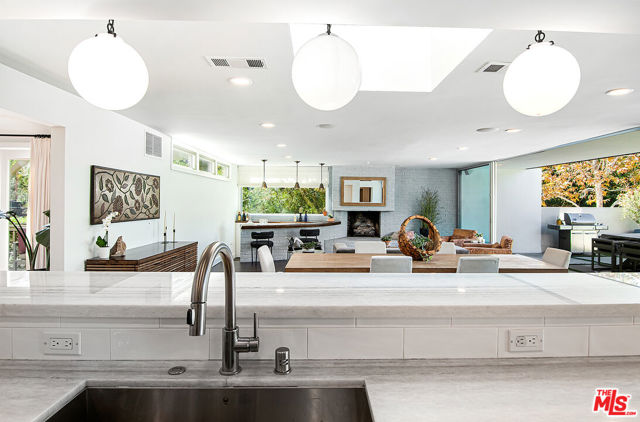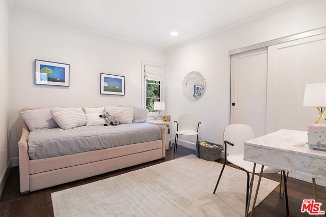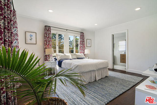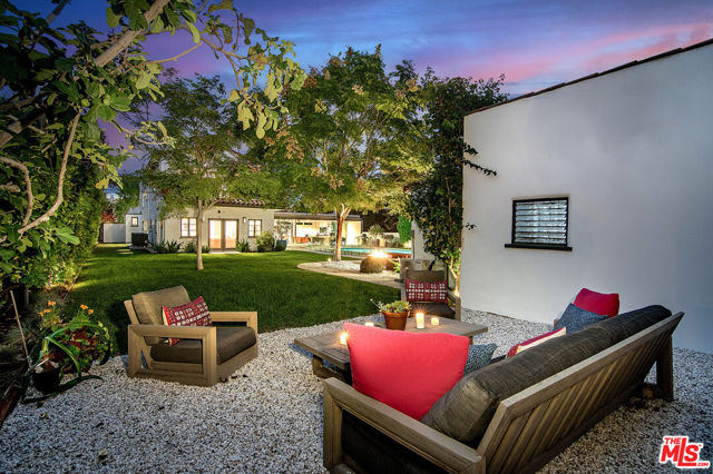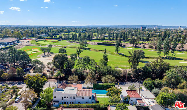 Extensively renovated and expanded Mediterranean home, gracefully set above the street on a prime corner lot in the heart of Hancock Park. Blending timeless architecture with modern comfort, this two-story residence offers sophistication, warmth, and effortless indoor-outdoor living. Expanded in the 1950s by famed architect John Lautner, the home retains its distinctive character while featuring an open design ideal for today's lifestyle. Sliding glass walls open to a lush backyard with a expansive grassy lawn, swimmer's pool, putting green, and private bonus office or gym. The main level features a grand two-story entry, formal living room with fireplace and French doors to a sunny patio, a gourmet kitchen with breakfast bar and casual dining area. The adjacent Lautner-designed den includes a fireplace and sunken wet bar. A main-level suite functions as a guest retreat or secondary primary bedroom, complete with a luxurious bathroom, walk-in closet, and built-in Murphy bed. A powder room, laundry room, and large pantry with wine frig complete the first floor. Upstairs, the spacious primary suite enjoys its own wing with dual walk-in closets, spa-inspired bath with soaking tub and oversized shower, and a private patio overlooking the grounds. Three additional bedrooms (one en-suite) plus a hall bath complete the upper level. Enjoy the Wilshire Country Club's annual fireworks from your own backyard. Ideally located between the Country Club and Los Angeles Tennis Club, this home also holds Hollywood history as the former residence of film director Robert Aldrich. Coveted 3rd St Elementary School.