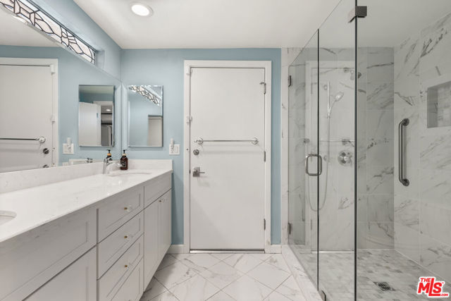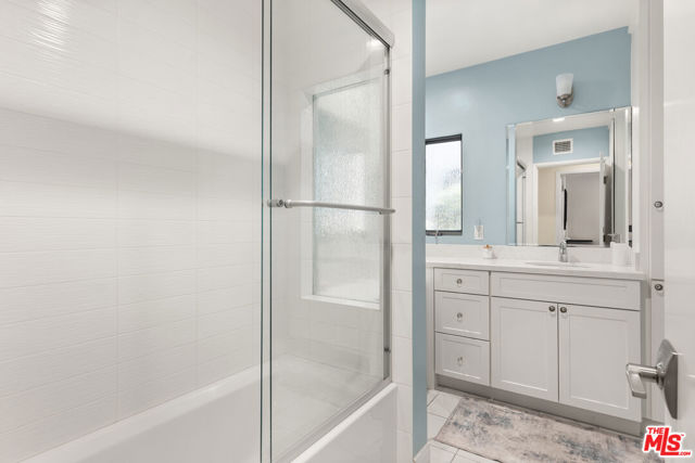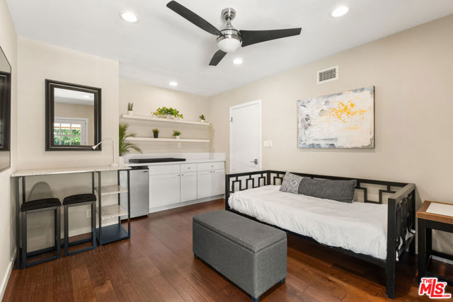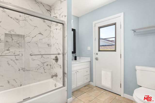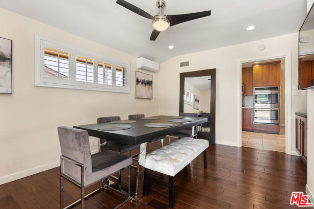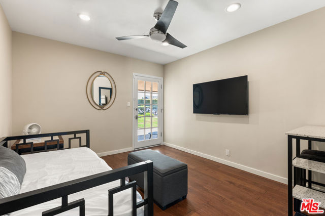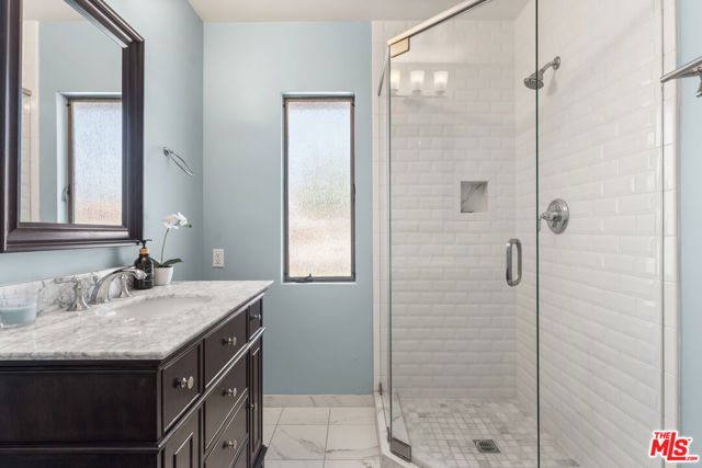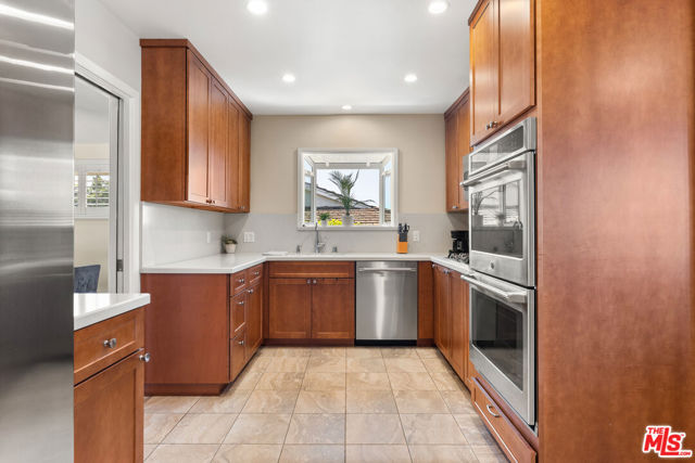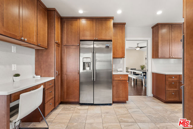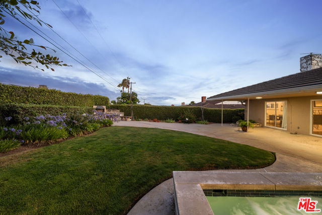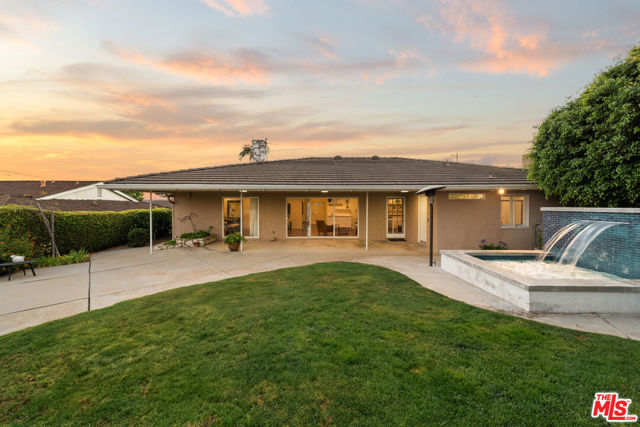 Tucked away at the end of a peaceful street in prestigious Upper Ladera Heights, this beautifully updated mid-century residence blends timeless charm with everyday luxury. Set on a spacious 9,000+ sq ft lot, this single-level home offers sun-filled interiors, thoughtful upgrades, and a backyard designed for both quiet moments and lively gatherings. For inside/outside Southern California living, access the beautifully landscaped backyard through large sliding glass doors from the dining room and living room, and through a paned glass door from the home office/bedroom/guest room. A curved driveway leads to the attached two-car garage with direct entry, offering both convenience and privacy.Inside, rich hardwood floors flow through open living spaces, where a stone fireplace anchors the main living room and custom built-ins add depth and sophistication. The remodeled kitchen features stainless steel appliances, a double oven, and sleek cabinetry all opening to a formal dining room with built-in cabinetry and inviting family room. Step outside to a generous backyard oasis with lush vegetation, a built-in BBQ, and room to design your dream pool. The primary suite is a private sanctuary, featuring a walk-in closet, a luxurious marble-tiled bathroom with dual vanities, and direct access to the yard where the remodeled built-in jacuzzi hot tub with sheer descent waterfall awaits. This well-appointed home also features two 50 gallon water heaters to ensure an abundance of hot water, an additional refrigerator in the garage, and two sprinkler timer systems for front and rear yards. Climate comfort is assured with central A/C plus individual mini-split systems, and the home's stylish furnishings can be included for a truly turnkey experience. Completely move-in ready, this residence captures the essence of relaxed California living in one of West L.A.'s most sought-after enclaves. Don't miss this rare opportunity to own a standout home in a premier location where style, space, and setting come together beautifully.