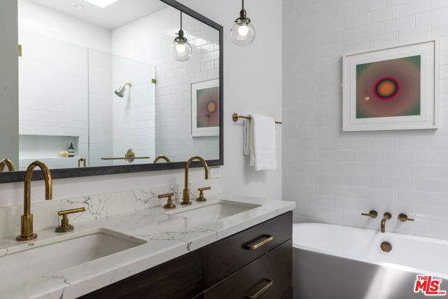Step into this bright and spacious top floor 3-bedroom, 3-bathroom condo, ideally situated just one block from Rose Avenue in a boutique 3-unit building. This home lives like a single family home, with three generously sized bedrooms and open-concept living. The inviting living space features abundant natural light and flows effortlessly blending a contemporary layout with timeless designer finishes. The kitchen opens into the living and dining area ideal for entertaining, with soaring ceilings, skylights and a brick veneer accent wall. The spacious primary suite features two walk-in closets and a bright, airy bathroom with a freestanding soaking tub. Enjoy the convenience of in-unit laundry, gated parking for two cars, and just a short stroll to vibrant restaurants, boutique shopping, and the beach. Welcome home!