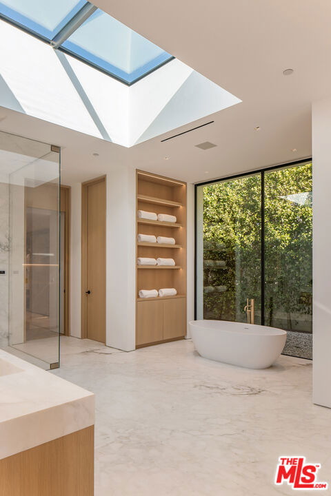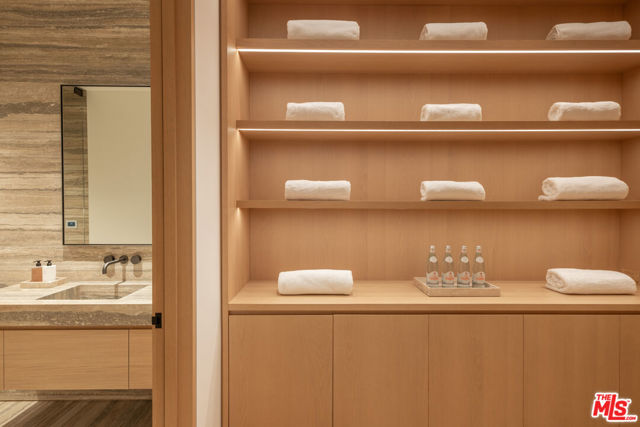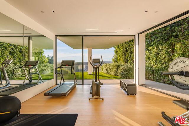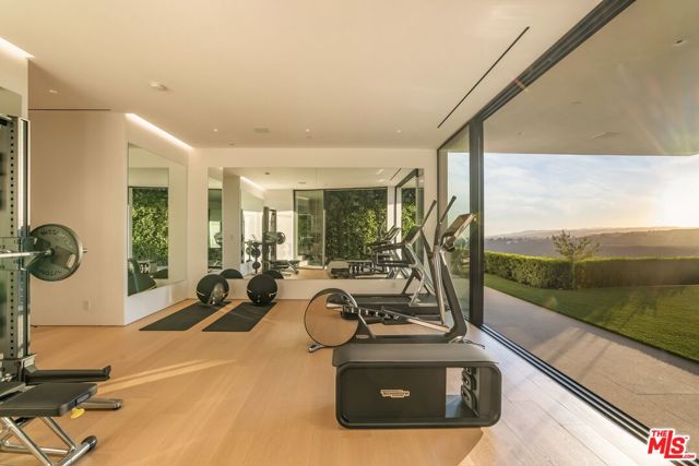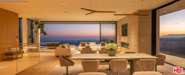 The View Estate is a serene architectural masterpiece sitting on the premier lot in the ultra-exclusive Trousdale Estates enclave. It offers unobstructed jetliner canyon, city, and ocean views from every room. This new construction showcases unparalleled fit and finishes, imported stonework, floor-to-ceiling glass walls, custom furniture, and soaring ceilings. Designed by world-renowned architect Paul McClean with interiors designed by LA based Bespoke interior design firm GD Studio. Greeted by a 100-year-old olive tree, pass through the gates to discover dramatic water features and a zero-edge waterfall leading to a 10+ car garage with turntable. Inside, tranquil formal living and dining rooms with warm European oak paneling and a marble fireplace open to a breathtaking backyard oasis complete with multiple fire features, flat lush lawns, and an infinity pool/spa that spills seamlessly into the skyline. There are two world class gourmet kitchen's that are outfitted with Calacatta Borghini marble and Miele appliances. The main Kitchen is the perfect gathering space and the Chef's kitchen is clearly Michelin star. Two expansive primary suites feature fireplaces, spa-like bathrooms, and dual closets. Take the elevator down to a day-lit entertainment lounge bathed in natural light, featuring a bar, wine room, world-class spa with infrared sauna and private massage room, and a state-of-the-art fitness center curated by Technogym. World class cinema with Candy Wall with additional lounge areas complete the experience. An estate of this scale, craftsmanship, and architectural pedigree can never be built again in Trousdale a true private sanctuary that masterfully blends design, luxury, and tranquility.