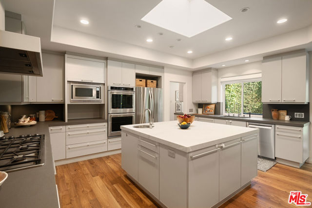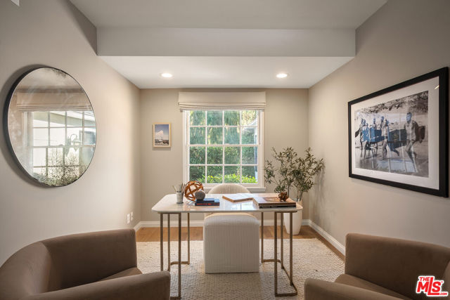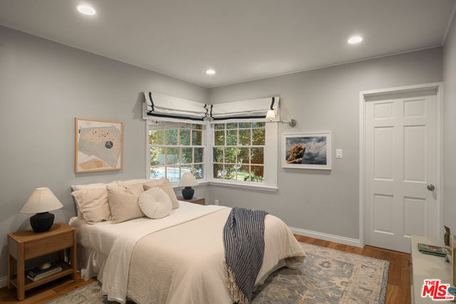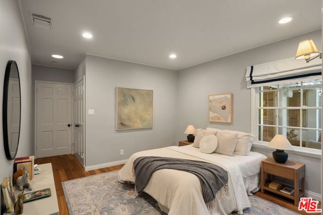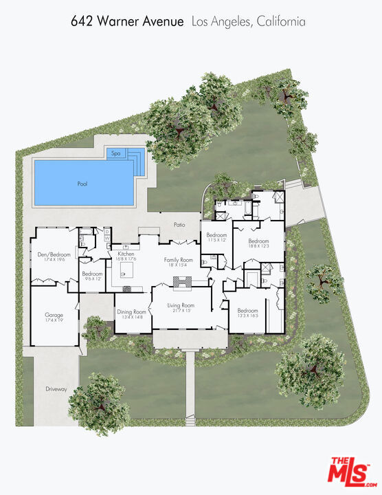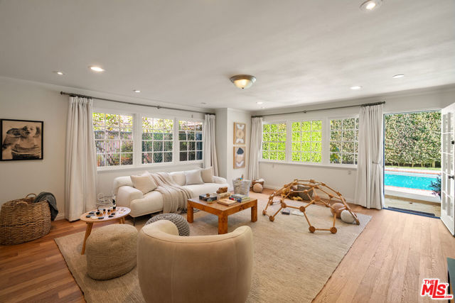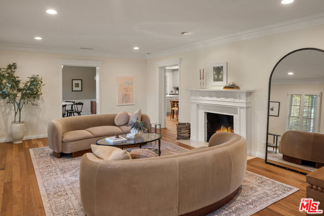 Set behind an iconic white picket fence on an oversized, flat, corner lot in the heart of Little Holmby, 642 Warner Avenue is a storybook, single-story traditional that blends 1940s character with extensive modern updates. Warm, inviting, and impeccably maintained, this home offers a rare combination of timeless appeal and turnkey living. Inside, the floor plan balances classic spaces, such as the formal living and dining rooms, with a recently created modern, open-concept family room and kitchen. Upgrades by the current owner include new wood floors throughout, new roof, refreshed bathrooms, updated plumbing, a revitalized kitchen and updated appliances. There are three guest bedrooms (one currently staged as an office), each with its own full bathroom, plus a second family room overlooking the pool that functions perfectly as a playroom or a spacious fifth bedroom. The primary suite features dual walk-in closets with custom built-ins and a beautifully remodeled bathroom. A laundry room and powder room complete the layout. The exterior is equally impressive. An inviting, vine-covered pergola off the family room leads to the expansive, private grassy yard and the sparkling saltwater pool, secured by a stylish glass safety fence. The result is a home that lives effortlessly; classic in its charm, modern in its comforts, and situated within one of Westwood's most beloved neighborhoods. Moments from Holmby Park, UCLA, and Warner Avenue Elementary, this is Little Holmby living at its finest.