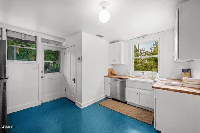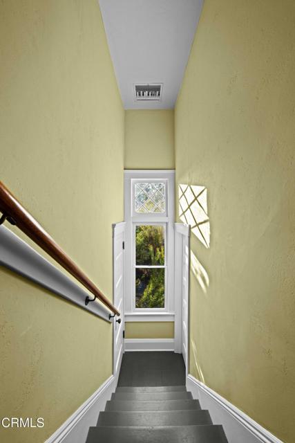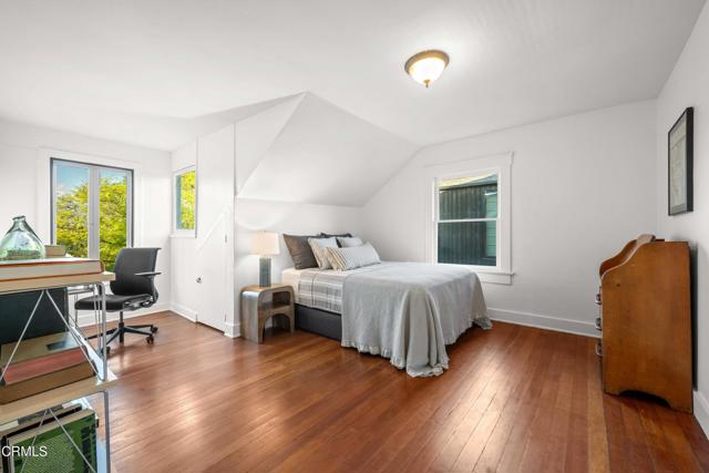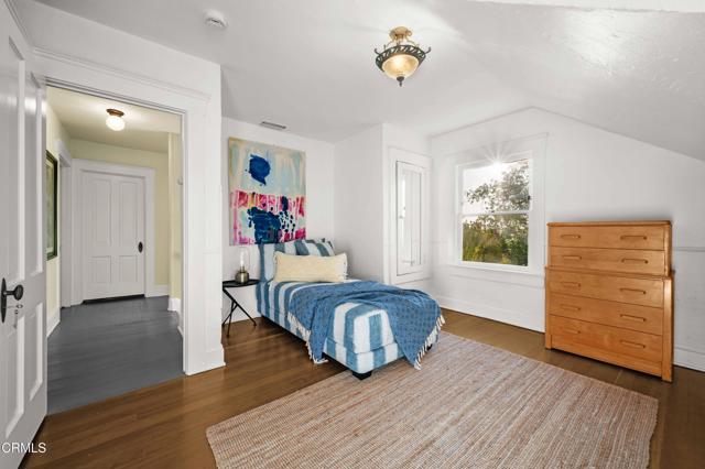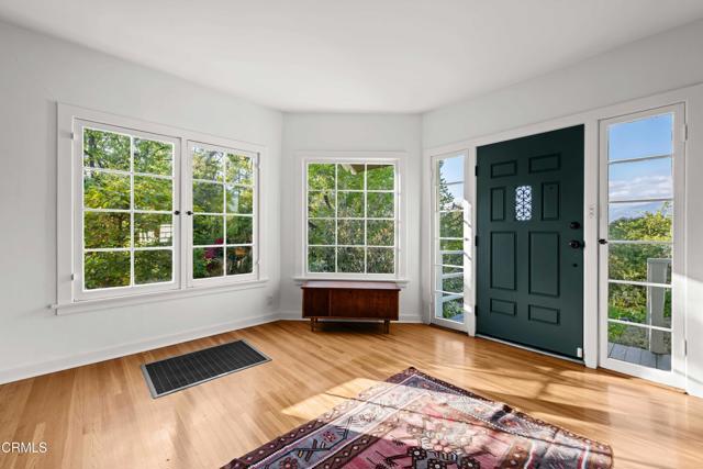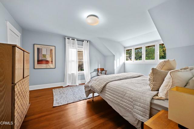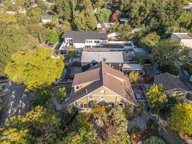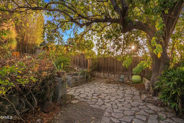 Nestled on a lush knoll above a quiet drive in the foothills of Highland Park's Hermon enclave on the South Pasadena border, this refined, two-story, 3 BR, 3 BA, 1905 Craftsman Farmhouse proudly holds court over its large double lot with glorious gardens and panoramic views of the San Gabriel mountains.Above street level and beyond a river rock border, the classic SoCal citrus-farm-inspired front garden features fruit trees and drought-tolerant shrubs.Rich character details abound in the dramatic contours of the light-filled living room, boasting high ceilings, casement windows, original oak flooring, built-ins, and an impressive, oversized picture window that exquisitely frames the verdant view. The formal dining room, with its handsome built-in buffet cabinet, wainscoting, and wall of French doors that beckon to the side garden, leads to the bright kitchen, featuring butcher block countertops, cheerful vinyl flooring, a vintage stove, stainless steel appliances, and a walk-in pantry. A charming sitting room, laundry room, and half bathroom complete the spacious first floor.Upstairs, the 3 gorgeously sunlit bedrooms showcase romantic lines, built-in bookcases and storage nooks, and a shared tiled bathroom. There is a second bathroom adjacent to the master bedroom, currently being utilized as a storage room, that could probably be restored and incorporated into an en suite.The split-level back patio leads the way to the private, massive, Dr Seuss-themed side yard focused on plants with dramatic, whimsical structures and a menagerie of fruit trees (orange, tangerine, lime, lemon, apricot, persimmon, loquat, a large white sapote, young apple, and two different varieties of pomegranate!) Featuring a towering dracaena draco, Australian and South African native shrubs, long river rock planter ideal for an herb garden, multiple entertaining areas, flat play yard, and not another home in sight, this yard is made for fresh cut blooms, views, and star gazing. At the end of the winding rear driveway sits the large parking pad and 2-car garage with EV charger and ADU possibilities.Ideally located adjacent to Mission Street in South Pasadena, Fresco Community Market, Hermon Dog Park, hiking trails, & just minutes to the Figueroa Corridor and Gold Line, the location cannot be beat.