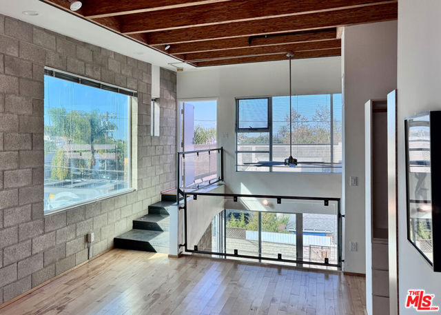 Quiet, rear-corner live-work loft designed by Jay Vanos Architects now available in the flourishing "Media District." This complex is one of Hollywood's few fully commercially-zoned (LAC2) condominiums. This is an amenity-rich urban area: just blocks from Tartine bakery and directly opposite Petit Trois off Highland and Pizzeria Mozza on Melrose. Built in 2005, the Highland Lofts are a live/work community for creative-class professionals, artists, and all who appreciate industrial architecture. All the lofts have private entrances, true open plans, soaring ceilings and large windows. This southwest corner unit in the back is peaceful and sunny. One of the largest units in the complex, the loft has an ample bedroom-level terrace featuring open views west towards Century City -- i.e NOT on Highland Avenue, but the quieter interior side. Two full en suite baths and a sliding translucent glass wall on the main floor below the terrace level, one flight above the entry, allows for a second bedroom or private office. The 2-car garage within the lower level was designed to be flex space and is currently used entirely as a bespoke design workshop. Private entry into the unit is from a path planted with mature bamboo and secured by a tall custom metalwork fence. Vehicles access the private garage from a gate and common driveway partially below grade. Enjoy remarkably low monthly HOA dues for a unit of this size and quality. Owners pay gas+ electric; remaining DWP costs paid by HOA. Secure entry via a gate with a new intercom.