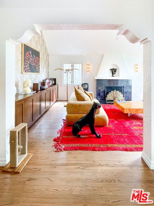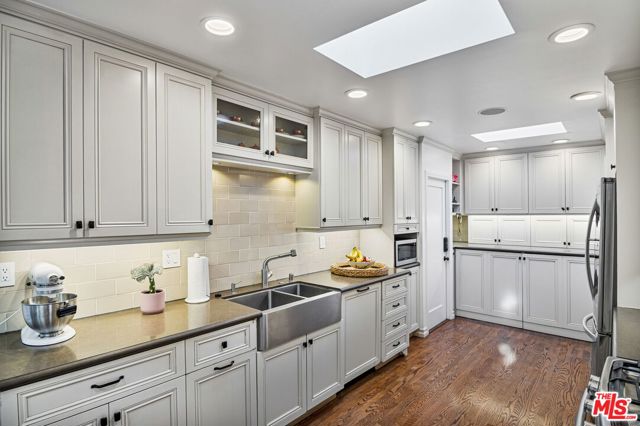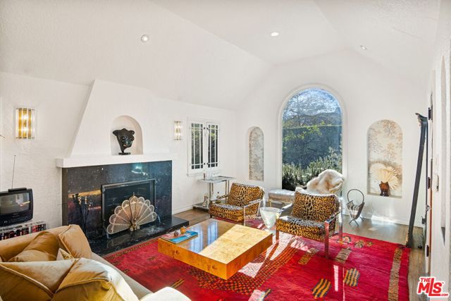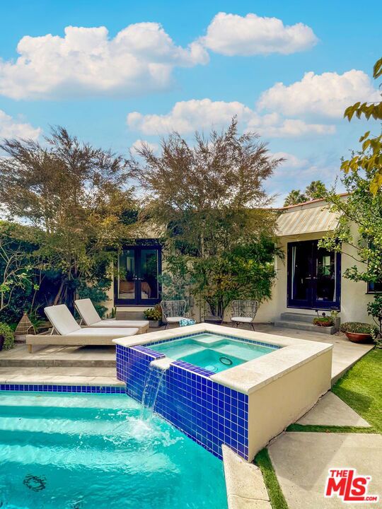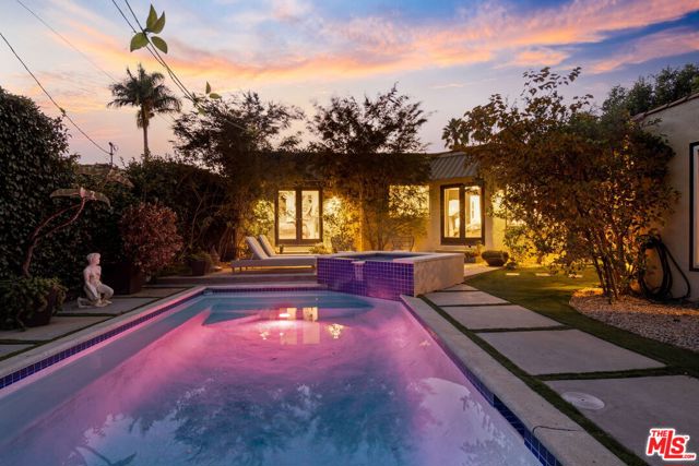 MOTIVATED SELLER!! Charming 1928 Spanish Revival in Melrose Village. Main House is 3 bed 2 bath. Guest House is 1 bed 1 bath. Peak California living in your own private oasis with glistening pool and spa, vine covered loggia with seating and fire pit, mature landscaping, outdoor shower and studio / casita with bathroom. Nestled behind gates and privacy hedges, this ultra private home is mere steps from all the restaurants, boutiques and galleries along Melrose and Fairfax. Character rich with arched windows, vaulted ceilings in the living room, Oak hardwood floors, over-sized marble fireplace, eat-in breakfast nook with built in booth, Saltillo paved front patio.