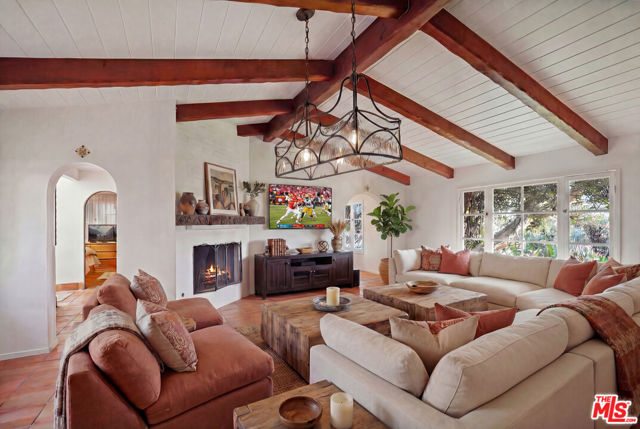 Welcome to Villa La Paloma, an iconic Point Dume estate showcasing the elegance and scale of Montecito living within one of Malibu's most coveted coastal enclaves. Set behind wrought iron entry and exit gates on a rare 1.4-acre double-wide lot, this six-bedroom residence blends European coastal inspiration with the relaxed sophistication of California luxury. Located a shell's throw from the beach, this rare offering has been owned by one family for the past 35 years. Dramatic architecture unfolds upon entry, with soaring beamed ceilings and light-filled living spaces designed for both grand entertaining and effortless everyday living. The living room flows seamlessly into a spacious gourmet kitchen featuring an expansive marble island with breakfast bar, seating areas, a signature fireplace centerpiece, built-in bar, dining area, and stairs leading to a wine cellar. All entertainment areas indoor and out are complemented by integrated Sonos audio. The main level hosts a serene primary suite with a luxurious spa-like bath, two guest bedrooms, one of which is being used as a private office with direct garden access. The mezzanine-level of the home can be used as a bedroom or study while enjoying ocean views. The west wing of the home offers 3 additional bedrooms, two of which combine to create a private apartment with its own entrance and exit. A separate game room with pool table opening to an intimate interior courtyard complete the west wing. French doors lead to all levels of outdoor living. An outdoor entertainment center including a Lynx built-in barbecue, wine and beer refrigerator, cocktail bar, and outdoor television create a resort environment. The flat parklike grounds feature a pool and spa adorned with hand-painted tiles, multiple lounge and seating areas, flowing fountains, a lush lawn, meditation and Zen gardens, a private orchard and a labyrinth beneath the watchful gaze of a giant Buddha. The additional amenity of generous parking for ten cars or more on the property make entertaining a breeze. Just moments from world-class surfing beaches and the Point Dume Headlands, known for breathtaking views and seasonal whale watching, Villa La Paloma offers privacy, scale, and timeless coastal living.