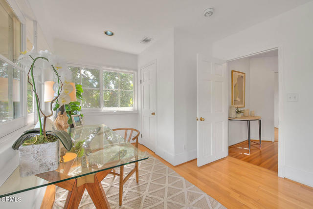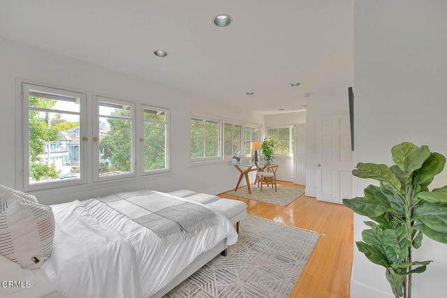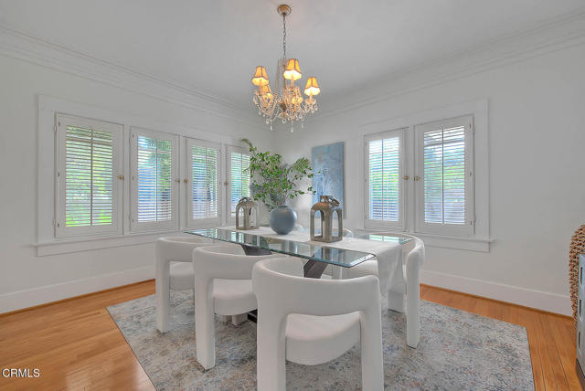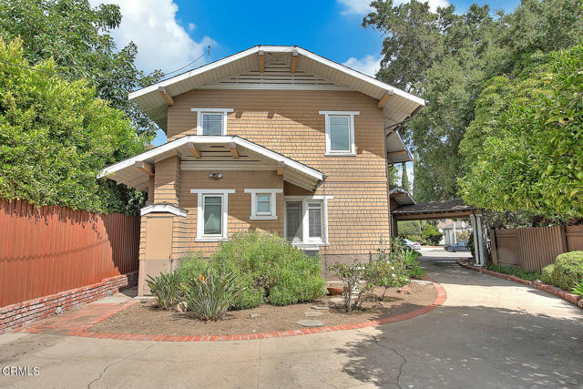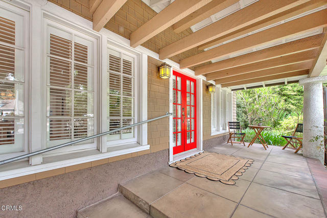 This timeless Craftsman residence captures the very essence of South Pasadena living. Set behind a beautifully landscaped front garden filled with hydrangeas, lilies, and camellias, the home welcomes you with a stately columned front porch--an ideal setting for morning coffee.Through striking red double doors, the spacious living room makes a memorable first impression. Anchored by a classic marble fireplace adorned with corbels, the room is bathed in natural light from thirteen casement windows, each framed with plantation shutters and arranged across three walls. Just beyond, the elegant dining room features crown molding, a graceful chandelier, and an additional six windows, creating a luminous setting for formal and casual entertaining alike.The kitchen is appointed with stainless steel appliances, recessed lighting, and ample pantry space. A gently curved staircase leads to the expansive primary suite, where seven windows frame tree-top and neighborhood views. This serene retreat also offers recessed lighting and a generous closet. Two additional bedrooms provide comfort and charm, each enjoying picturesque outlooks. Step outside to discover an inviting covered trellis designed for al fresco dining. The landscaped rear gardens bloom with roses, birds of paradise, and vibrant Mexican sage, offering year-round color and fragrance. A brick-lined driveway accommodates two uncovered parking spaces, complemented by a two-car garage with storage and a classic porte cochere.Ideally situated with a coveted 97 Walk Score, this residence places you moments from South Pasadena's finest shops, restaurants, cafes, and conveniences. With its architectural pedigree, exquisite detailing, and rare blend of beauty and function, this Craftsman is an opportunity to own a true piece of South Pasadena's heritage.