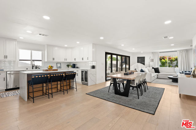 Discover a truly exceptional residence where designer sophistication meets effortless comfort. This completely remodeled 3-bedroom, 3-bath home showcases impeccable craftsmanship and thoughtful detail at every turn, offering a rare opportunity to own a move-in-ready masterpiece. An open floor plan creates a seamless flow, enhanced by abundant natural light and recessed lighting throughout. The living room captivates with a stunning wood accent wall and expansive cantina-style doors that open wide to a private outdoor retreat. Step onto the deck and patio, where a high-end, 4k aluminum pergola with built-in recessed lighting and a louvered roof allows you to tailor the ambiance, from sunlit afternoons to softly illuminated evenings. The chef's kitchen stands as the heart of the home, featuring white shaker-style cabinetry, quartz countertops, a generous island, ample storage, and a built-in wine fridge, perfectly designed for both everyday living and elegant entertaining. The primary suite serves as a serene sanctuary, complete with a gorgeous dual vanity, a beautifully built-out walk-in closet, and sliding glass doors that lead directly to the lushly landscaped backyard. A second bedroom offers its own en-suite bath, while the third bedroom enjoys convenient access to a stylish hallway bath, providing comfort and privacy for family and guests alike. Step outside to an entertainer's dream. The outdoor kitchen boasts a built-in grill and TV, creating the perfect setting for peaceful evenings under the stars or spirited game-day gatherings. Drought-tolerant landscaping, artificial turf, and privacy hedges ensure beauty and ease of maintenance year-round. The attention to detail continues with a beautifully landscaped front yard adorned with lemon and olive trees, illuminated pathway lighting, and an expanded front porch that offers a warm and elegant welcome. A two-car garage with epoxy flooring and a spacious interior laundry room with side-by-side washer and dryer and additional storage complete the home's exceptional offerings. This light-filled, designer-perfect residence blends luxury, comfort, and functionality into one remarkable opportunity. Homes of this caliber rarely become available. This is the one you have been waiting for.
