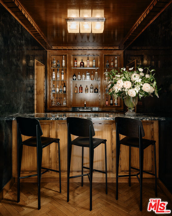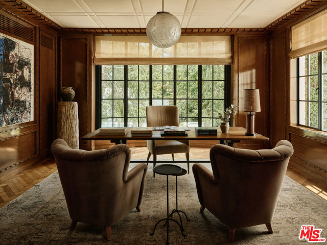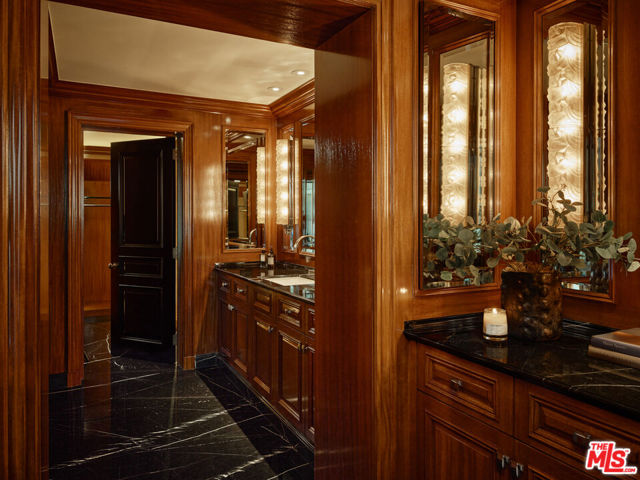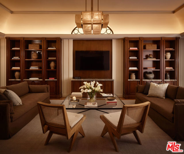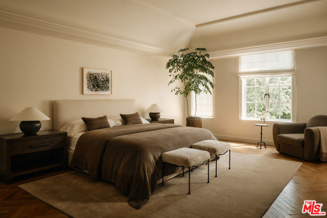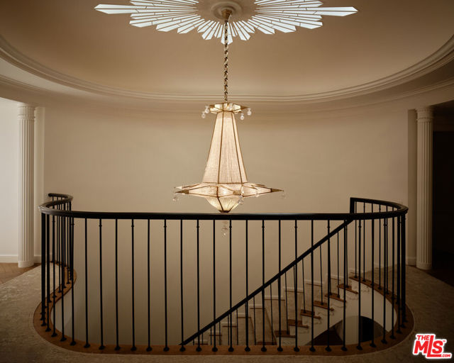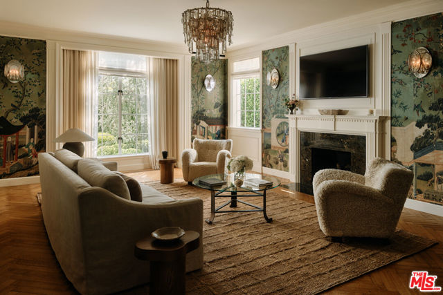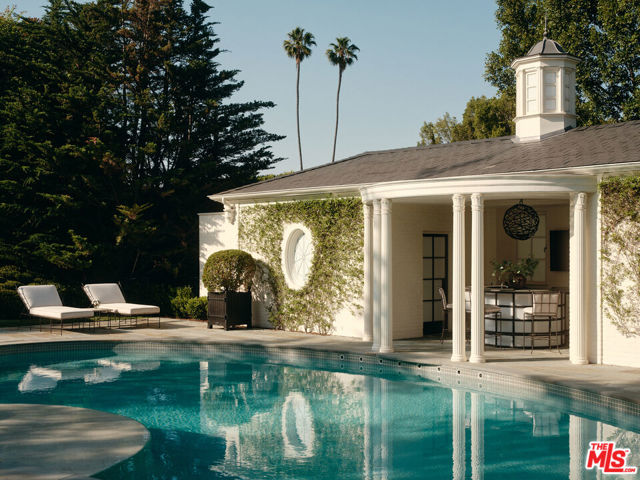 The Rutherford House is a masterpiece of architectural design, showcasing unparalleled quality and attention to detail. Located on the most desirable street in Beverly Hills, the one-of-a-kind residence blends old Hollywood with modern luxury. Upon entering the grand entrance, guests are greeted by a classic, winding staircase and a magnificent view that reveals the impressive back grounds. The main level features a formal living and dining room, Ruhlmann-inspired library and billiard room, bar, and grand morning room lined with 18th-century wallpaper and original fireplace. The kitchen is functional yet breathtaking with decadent marble, mosaic-tiled ceiling, and top-of-the-line appliances. A primary suite features marble bathrooms, oversized closets, and a separate lounge area that overlooks a manicured garden. Outside is a pavilion with an oval pool and pool house inspired by Paul Williams' remarkable design. With many more features throughout, this iconic estate must be experienced to be believed. Step into timeless elegance and rich history with the Rutherford House.