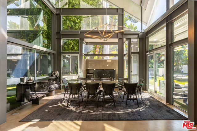 Exceptionally private architectural home crafted from steel, glass, and concretea bold statement in design, quality, and craftsmanship. Soaring ceilings, exposed commercial beams, and natural metals create a dramatic, gallery-like atmosphere, while expansive walls of glass fill the interiors with light and seamlessly connect every space to the outdoors. Polished concrete floors flow through open-concept living spaces, creating a sophisticated yet comfortable backdrop for elevated living. The chef's kitchen features top-of-the-line appliances, custom cabinetry, and a seamless connection to the grand great roomperfect for both intimate gatherings and large-scale entertaining. Every detail, from architectural lines to designer finishes, reflects precision, artistry, and thoughtful design. The luxurious primary suite offers a spa-like retreat with a freestanding soaking tub and private outdoor access, while additional bedrooms and living areas provide light-filled, expansive spaces for family and guests. Outside, professionally landscaped grounds evoke a private resort, with a sun-drenched swimmer's pool, tranquil water features, and multiple elegant dining pavilions. The outdoor spaces capture the essence of Southern California living, offering the perfect balance of grand entertaining and serene everyday enjoyment .This rare architectural residence unites visionary design, high-end craftsmanship, and seamless indoor-outdoor flow, creating a fully private sanctuary where art, luxury, and lifestyle converge in one extraordinary home.
