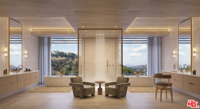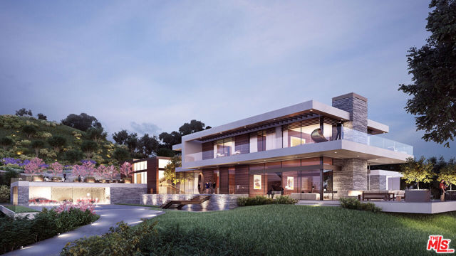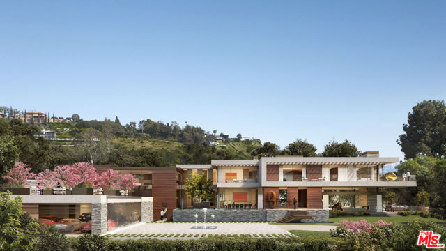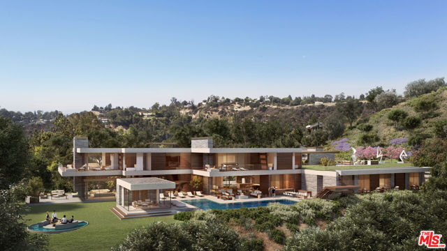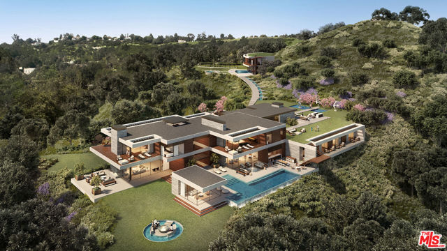 Welcome to the pinnacle of luxury living at this 10-acre promontory estate, offering breathtaking city, canyon, and mountain vistas. Nestled at the end of a long private drive, this sanctuary ensures maximum privacy and prime security with a guard booth and a gated entrance. Upon arrival, you're greeted by a lavish motor court leading to timeless modern architecture. The sophisticated 21,661 sq ft main house and 3,166 sq ft car museum include a turntable and a sliding glass garage door with a waterfall entry catering to only the finest. This distinguished home showcases a pool house haven, a 5,000 sq ft guest house that can be utilized as a rejuvenation center, and a cantilevered spa with an indoor/outdoor pool. Outdoor amenities include lap pools, lush gardens, natural ponds, an outdoor cinema and fire features. This compound exudes never before seen opulence. Inside this substantial three-story gem, you'll find 8 bedrooms, 20 bathrooms, two elevators, a home theater, multiple offices, a variety of bars and a wine and scotch cellar. Featured within this modern masterpiece, is a state-of-the-art home gym, salon, yoga room, a gourmet kitchen, and an interior courtyard. The cascading water feature coupled with the fire pit, compliment the majestic panoramic views and achieve the resort-style atmosphere. This hilltop sanctuary is a breathtaking private oasis offering the ultimate luxury lifestyle of elegance and solitude.