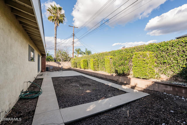 This single-story home is in a wonderful neighborhood of North Hills and has kept its charm of its mid-century design, note the grand double door entry. Proceed from the entry to a spacious Great Room which could be a combination Living Room and Dining Room, it has a raised fireplace, and a sliding window door to the backyard. The home's Den or multi-purpose room leads to its kitchen which features: ample cabinetry; tile countertops; a cozy nook; windows overlooking the useful side yard; and a direct doorway to the garage. The primary bedroom features: a large window to the backyard; a primary bathroom with a full shower and a convenient exterior door to the home's side and backyard; and there is a spacious walk-in closet with shelving. There are 2 additional bedrooms; and a second full bathroom. Enjoy lounging in your backyard which includes: a patio; and privacy that is enhanced by its surrounding landscaping. Additional features includes: shutters; a useful 90-degree turn in a driveway; and a 2-car garage with cabinets. This home offers endless possibilities to buyers who wish to update and customize it; it is situated close to schools, parks, shopping and recreation.