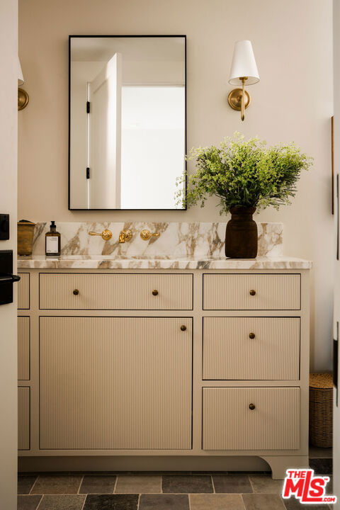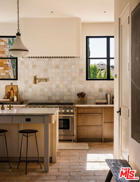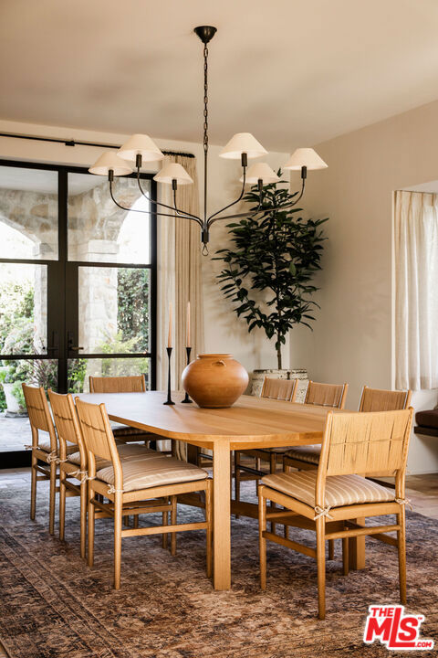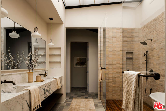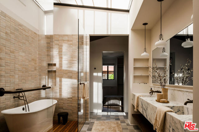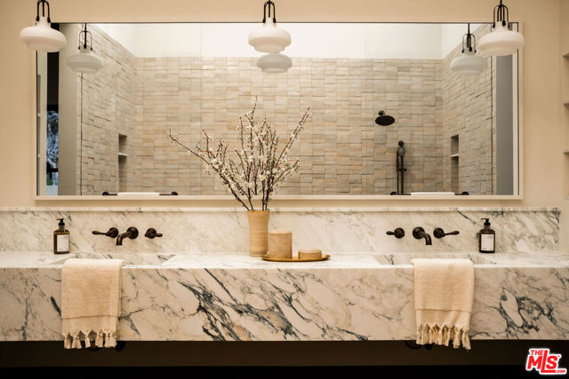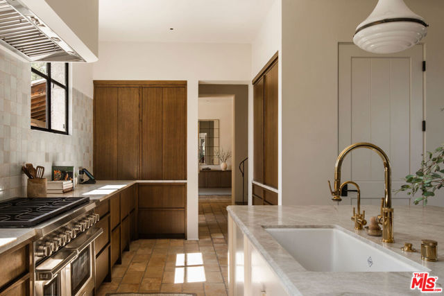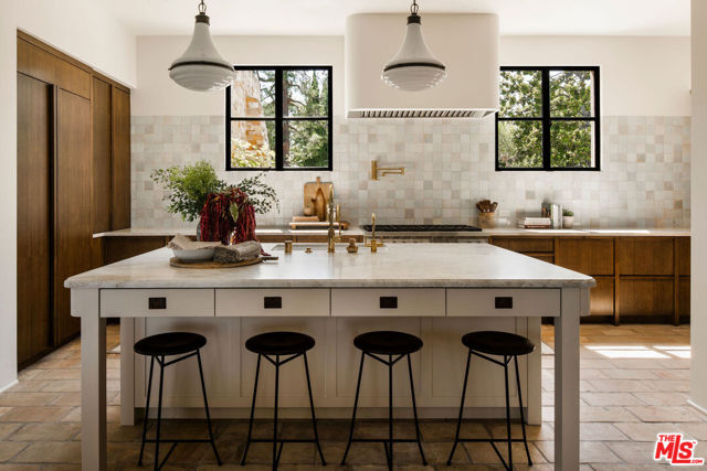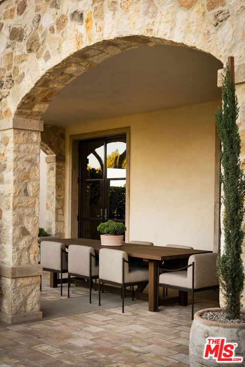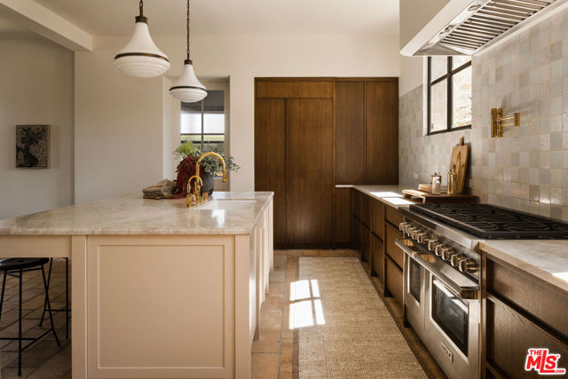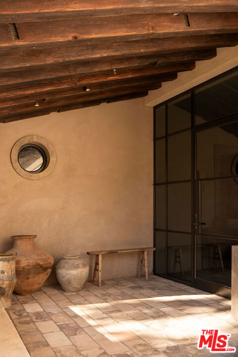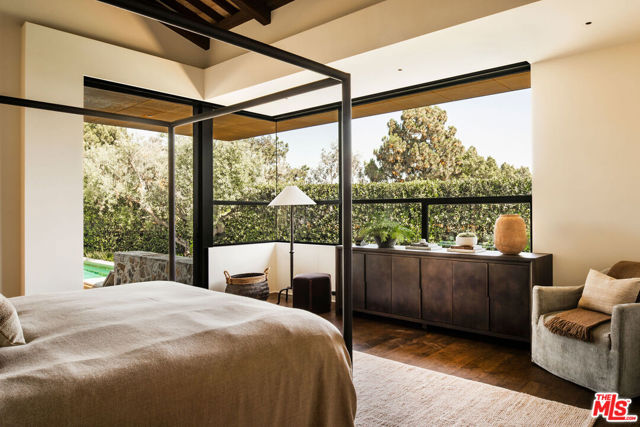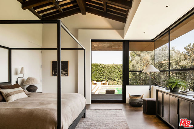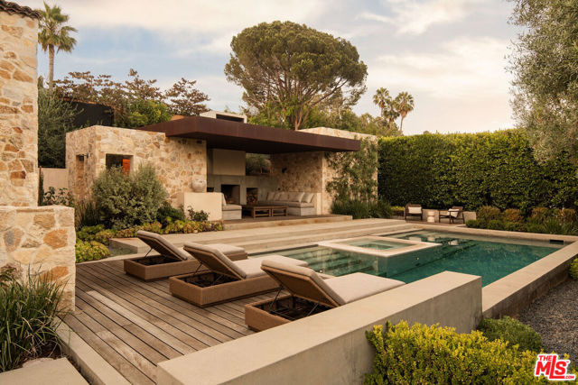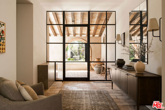 Alpine Ranch, located on one of the most prestigious streets in Beverly Hills, is a gated, custom-built Italian Villa originally designed by acclaimed architects Luis Ortega and Jose Fernandez. It has been fully reimagined as a brand-new home, impeccably redesigned and furnished by Amber Interiors. Every detail of this 5-bed, 5-bath estate has been thoughtfully upgraded, from fully renovated bathrooms, bedrooms, and living spaces to a comprehensive redesign by Amber Interiors. Their curated touches include bespoke furnishings, hand-thrown ceramics, artfully stacked books, and carefully layered textiles all included in the sale for a true turnkey experience. Interior highlights blend rustic charm with refined elegance, including exposed wood beam ceilings, steel-framed windows, and natural stone accents reminiscent of a countryside villa in the South of France. The main level is thoughtfully laid out with a sunlit formal living room that opens to a serene outdoor patio, an inviting dining room, and a chef's kitchen outfitted with Wolf appliances. Four bedrooms are located on this level, including a private primary wing that serves as a true retreat, featuring garden and pool views, a spa-quality bath with rain shower, freestanding tub, and overhead skylights that bathe the space in natural light. Upstairs, a separate private casita and an additional flex bedroom or gym open onto a generous covered balcony and rooftop deck. Set behind gates, the grounds are just as captivating as the interiors. A sprawling motor court offers ample parking for guests, while the expansive grassy yard, resort-style pool, and sun-drenched cabana invite effortless indoor-outdoor living. Thoughtful details like a private outdoor shower and a dedicated pool bathroom add both convenience and charm, creating a true sanctuary for relaxation and entertaining under the California sun.Just moments from the Beverly Hills Hotel and the world-class shopping, dining, and entertainment of Rodeo Drive, Alpine Ranch is a rare opportunity to own a fully furnished, design-forward estate in one of the most iconic neighborhoods in the world.