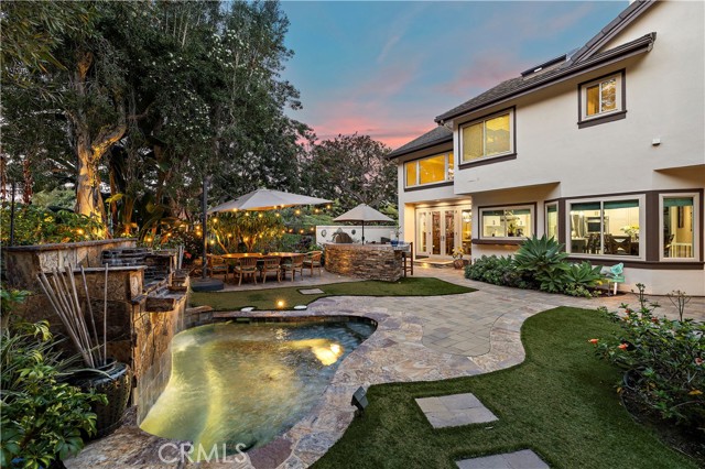 Welcome to 1 Belaire, an exceptional residence nestled within the prestigious gated enclave of Crest de Ville in Laguna Niguel. Offering approximately 3,715 square feet of thoughtfully designed living space, this impressive home features four generously sized bedrooms, three well-appointed bathrooms, and an expansive bonus room ideal for a media lounge, home office, or game room. Upon entry, the home showcases an elegant blend of porcelain tile and plush carpet flooring, creating warmth and sophistication throughout. The recently renovated chef’s kitchen is the heart of the home, equipped with stainless steel appliances, including a cooktop, wall ovens, a dishwasher, a refrigerator, and custom cabinetry—perfectly suited for both everyday living and entertaining. Formal living and dining spaces provide refined areas for gatherings, while the inviting fireplace adds character and comfort. The primary suite serves as a private retreat, complete with a spacious walk-in closet and a spa-inspired ensuite bathroom featuring dual vanities, granite countertops, and a separate shower. Each secondary bedroom is generously proportioned, offering flexibility and comfort for family and guests alike. Outdoor living is a standout feature, with a private, fenced backyard designed for relaxation and entertaining. Enjoy a built-in barbecue, a spa, and strategically placed lighting that enhances ambiance and usability. Ideally located within one of Laguna Niguel’s most desirable gated communities, this residence blends modern upgrades with timeless elegance in a serene coastal setting. An exceptional opportunity to own a refined home in Crest de Ville—schedule your private showing at 1 Belaire today.