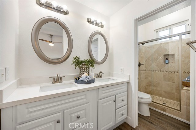 An invitingly modern sanctuary awaits within this remodeled detached home, boasting a spacious and open-concept floor plan designed for contemporary living. Sleek, high-end finishes and an abundance of natural light create a sophisticated yet welcoming atmosphere, perfect for both relaxing evenings and entertaining guests. The remodeled gourmet kitchen is a chef's delight, featuring all new shaker style cabinetry, stainless steel appliances, custom backsplash and a large quartz central island that flows seamlessly into the main living areas. This home offers tasteful surroundings with fresh interior paint, all new wood-look vinyl plank flooring throughout, cathedral ceilings, a custom tile gas fireplace to enjoy cozy nights in, and a brand new A/C for warmer days. The seamless transition between indoor and outdoor spaces enhances the sense of openness and provides a perfect setup for gatherings in the private backyard. The Hamptons community offers residents a lovely pool and spa area with an outdoor fireplace, dining tables and cabanas. Experience the best of convenience and community in a prime location, with excellent schools, beautiful parks, and scenic hiking trails just moments away. You'll also enjoy easy access to premier shopping and dining, creating the perfect backdrop for a vibrant and active lifestyle. Come experience 10 Sherrelwood today!