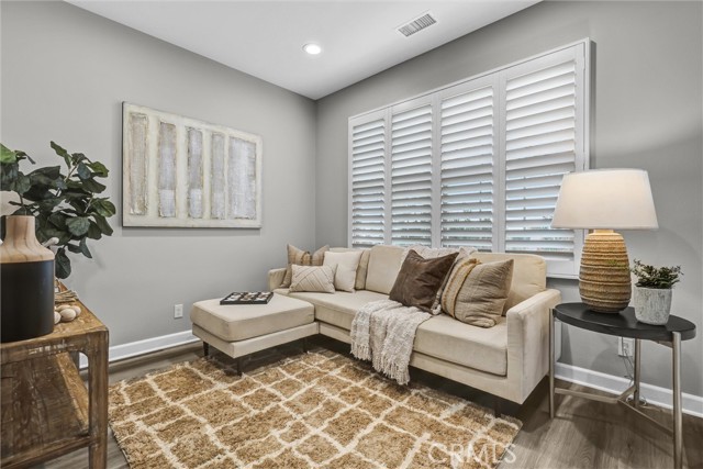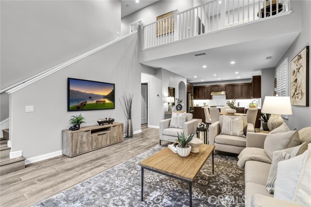 Fabulous opportunity to live in the village of Cypress Village in Irvine in this beautifully appointed, 2-story premium lot Trellis Court Plan 3 home. Built in 2018, this bright home boasts a spacious open floorplan with high ceilings in the living area and access to the side yard with no rear neighbors. The home features 2,000sq/sf of living space with 4 bedrooms and 3.5 bathrooms, including a downstairs bedroom and full bath, along with an upstairs loft. The gourmet kitchen opens up to the family room and includes premium dark wood cabinets, upgraded quartz countertops with a custom subway tile backsplash, kitchen island, and stainless steel appliances. Additional upgrades include wood flooring throughout downstairs, upgraded premium vinyl flooring upstairs, upgraded tile in upstairs laundry & baths, custom window coverings, designer paint, ceiling fans, and recessed lighting throughout entire home. Upstairs features a spacious master bedroom with a master bath along with 2 other bedrooms and 2nd full bath along with a loft. Garage features a Tesla 3rd generation charger with 60 amps & 240 volts for fast car charging. Enjoy resort style amenities including hiking & biking trails, sparkling swimming pool, clubhouse, and walking distance to all of the Great Park amenities, including Fivepoint Ice Rink. Close shopping at Woodbury Town Center & the Irvine Spectrum, parks, the Jeffrey Trail, and easy access to the freeways and employment centers. Zoned to award winning Irvine schools (Cypress Village Elementary, Jeffery Trail Middle School, and Irvine HS). Low Mello Roos of $1,700 per year with a property tax rate of 1.12%. A great place to call home!