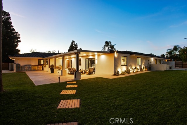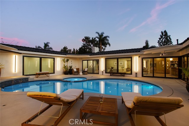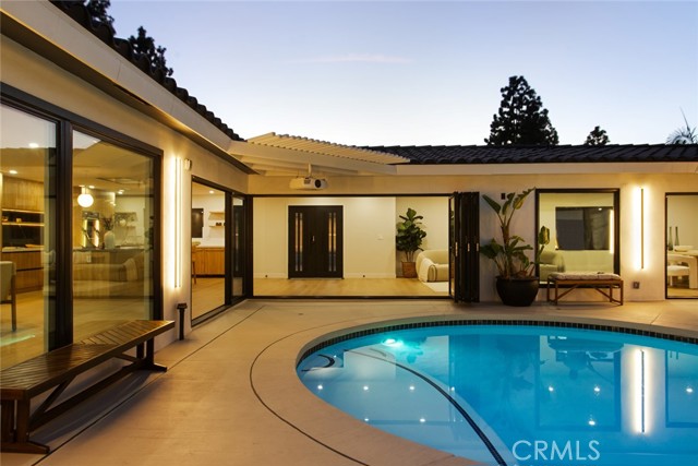 Intentionally designed around single-level living, privacy, and seamless indoor-outdoor connection, this approximately 4,500-square-foot residence centers on a rare private courtyard that brings light and openness into the heart of the home. At the center of the 5-bedroom, 4.5-bathroom single-level layout is a stunning courtyard pool — a true indoor-outdoor retreat framed by expansive glass and dramatic bifold openings. Whether hosting gatherings or enjoying quieter evenings, the courtyard becomes a natural extension of the living space, complete with an integrated projector for open-air movie nights under the stars. The design balances openness and privacy, thoughtfully arranged for the way people live, work, and gather today. The 5-bedroom, 4.5-bathroom layout plus dedicated office offers exceptional flexibility, including a private mother-in-law suite ideal for multi-generational living or guests. Situated on approximately half an acre and tucked away on a double cul-de-sac, the property offers exceptional privacy. Two newly poured concrete driveways — including a separate RV-capable driveway — provide ample parking and flexibility. Extensively remodeled, the home features Santa Barbara smooth stucco, all-new PEX plumbing, upgraded HVAC with new ducting, and individual climate control for every bedroom. Wide-plank European oak flooring complements expansive glass walls, including multiple multi-slide doors, a dramatic 14-foot bifold opening to the courtyard, and additional bifold doors to the backyard. The kitchen features custom cabinetry, Italian porcelain and quartz countertops, premium Sub-Zero and Thermador appliances, dual dishwashers, and a built-in coffee station. Walker Zanger tile accents the space, while the butler’s pantry includes a steam oven and wine refrigerator. The primary bathroom features heated floors and Brizo fixtures. Walking distance to Villa Park Elementary and minutes from Villa Park Town Center. Approximately 10–15 minutes to major medical centers including CHOC, St. Joseph Hospital, and UC Irvine Medical Center, about 20 minutes to John Wayne Airport, and roughly 25–30 minutes to coastal beaches. Convenient access to Downtown Los Angeles while offering the space, privacy, and single-level living rarely found in more urban environments. No HOA. No Mello-Roos. A rare single-level architectural residence combining privacy, scale, and seamless indoor-outdoor living.