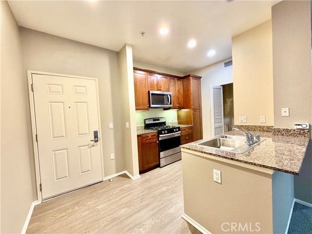 LUXURY LIVING AT AVENUE ONE IN IRVINE! Step into resort-style living with this spacious ground-floor end unit, offering 1 large bedroom, 1 upgraded bath, and only one shared wall for enhanced privacy. The open concept design features a modern kitchen with granite countertops, luxury vinyl plank flooring, gas range, newer microwave, dishwasher, refrigerator, under-cabinet lighting, and in-unit stackable washer & dryer. The bathroom has been refreshed with a brand-new glass shower door, new toilet, new sink, granite counters, and abundant storage. Relax in the inviting living area that flows seamlessly to a private patio surrounded by towering palms and bird of paradise landscaping, creating a tranquil, tropical atmosphere. Avenue One delivers the ultimate amenity package: Jr. Olympic-size pool, spa, fire pit, state-of-the-art fitness center with pool views, cabanas, BBQ areas, indoor half-court basketball, children’s playground, sundeck with lounge seating, lush landscaped grounds, EV car charging stations in guest parking, and a secure bike storage area. Perfectly situated in Irvine’s vibrant Airport Area, this home is minutes from John Wayne Airport, UCI, Park Place Shopping Center, South Coast Plaza, Diamond Jamboree, The District at Tustin, Irvine Spectrum, Newport Beach, and world-class dining, shopping, and entertainment. Easy access to the 405, 55, and 73 freeways makes commuting a breeze. This is your opportunity to lease a stylish, move-in ready condo in one of Irvine’s most desirable resort-style communities!