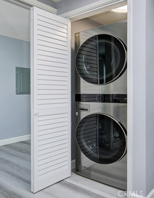 Welcome to 111-A Via Estrada – a lovely single-level, end-unit, two-bedroom, one-bath BARCELONA residence in the active Laguna Woods senior community. This property is located in a quiet corner of the cul-de-sac far from busy roads and noisy highways. Sitting on a bluff, this residence has a tranquil neighborhood view. The beautifully landscaped approach to the front of the residence adds to the property’s curb appeal. Private front patio is the perfect location for outdoor entertaining, dining and relaxing. The large living room allows a variety of different furniture configurations. The light and bright kitchen has a window overlooking the front patio. There is a private outdoor central atrium just off the dining area. The primary bedroom easily accommodates a king-size bed. The versatile guest bedroom could alternatively serve as a home office, workout room or arts and crafts studio. The bathroom has a skylight and a tub/shower combo with grab bar. Upgrades include gorgeous laminate flooring, dual-pane windows and a newer stackable LG washer/dryer conveniently located in a corner closet of the bathroom. This residence has been well-maintained and is move-in ready or it can be upgraded or completely remodeled to a new owner’s taste. The assigned carport has both upper and lower storage cabinets. Plus, there is ample guest parking in the cul-de-sac. Do not miss this attractive residence!