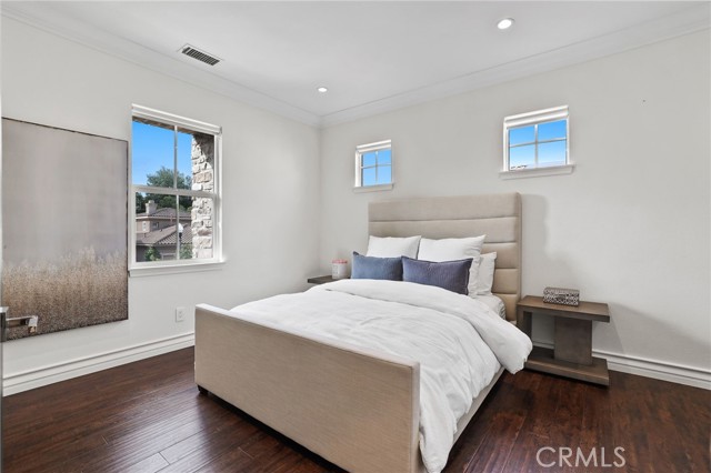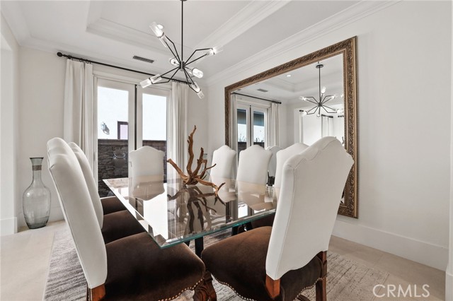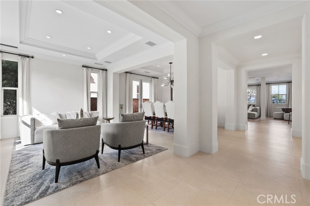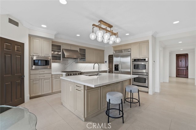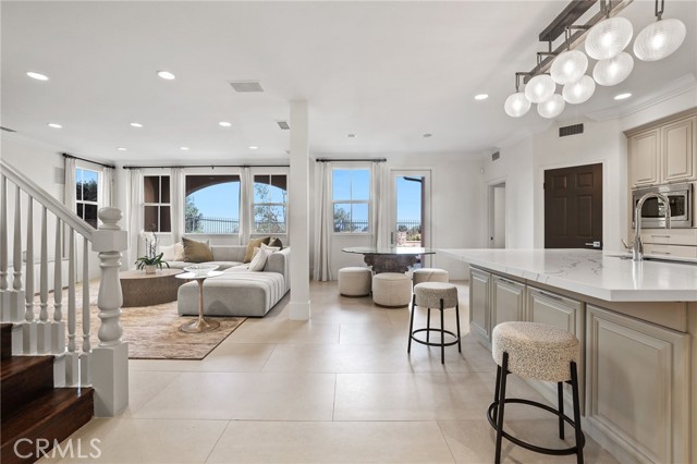Completely reimagined in 2024 with an extensive remodel, this five-bedroom, five-and-a-half-bath residence is a showcase of modern sophistication, blending timeless design and top quality finishes with uncompromising attention to detail. Perched on a ultra-desireable street within Quail Hill, the home commands unobstructed panoramic city and mountain views from both levels—sweeping, private vistas that transition seamlessly from sunrise to sunset. From the moment you arrive, a custom wood entry door and lush, newly designed landscaping set the tone for the elegance within. Inside, every surface has been touched by thoughtful craftsmanship and intentional design. Imported tile flooring, House of Rohl fixtures, and crystal-clear glass shower enclosures exemplify the home’s commitment to luxury. The spa-inspired primary bath is a true sanctuary, centered around an 84” Victoria + Albert soaking tub and complemented by bespoke finishes that rival any five-star resort. The gourmet kitchen is as functional as it is beautiful, boasting custom cabinetry, a built-in stainless steel refrigerator, and expansive quartz slab countertops. Open-concept living spaces are framed by crown mouldings, effortless blinds, and seamless indoor-outdoor flow to an entertainer’s backyard. Here, a built-in BBQ, firepit, and multiple seating areas provide a dramatic setting for gatherings, all oriented to maximize the breathtaking views. Designed for versatility, the home features a main-floor full bedroom/bathroom suite ideal for guests or multi-generational living, while upstairs bedrooms include custom closet systems for effortless organization. A three-car garage with epoxy flooring underscores the property’s practicality and convenience. Just steps from shopping and the award-winning Alderwood Basics Elementary School, 113 Bottlebrush is more than a home—it’s a rare opportunity to own a completely revitalized Irvine residence that embodies luxury, comfort, and convenience in equal measure.