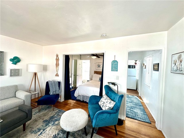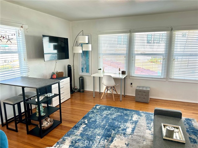 The perfect location! Walk to downtown shops, restaurants, wine bars, pier & beach. Catch the trolly and cruise downtown San Clemente, beach & Outlet Mall. This Fully Furnished Jr. 1 bedroom 1 bath, features beautiful hardwood floors, newer paint inside & out. New roof, new staircase, updated kitchen and bath, newer windows with 2 inch blinds, new furnishings. Mirror wardrobe doors with custom organizer. Lots of natural light. ALL Utilities included, Direct TV, & Cox high speed WiFi. New coin op washer & dryer. Shared back yard area, with umbrella, patio furniture, fire pit & BBQ. Street parking. Walk to downtown restaurants, gym, wine bar, shopping, pier & beach. This is an upstairs back unit. Looking for quiet single tenant. Building is meticulously maintained. Neighbors are all very nice and quiet.