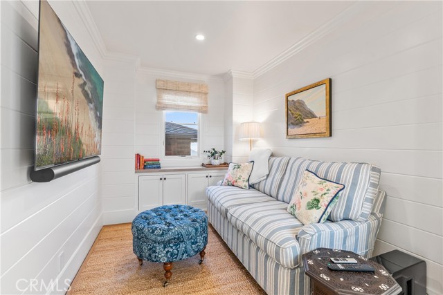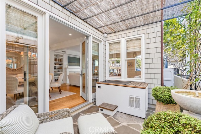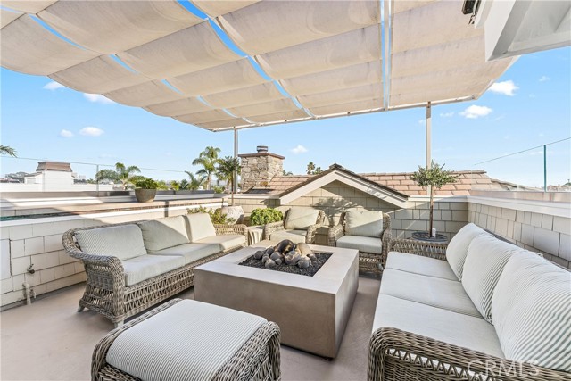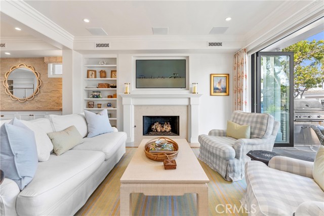 Incredible opportunity to own a beautifully designed home on the quiet end of Balboa Island’s desirable 100 block of Garnet. The first level features a spacious raised front patio with fire pit and built-in barbecue, with beautiful bifold doors leading into a light-filled great room with fireplace, custom built-ins, separate dining area, and a gourmet chef’s kitchen offering elegant stonework, floating shelves, a large center island, and high-end appliances. This level also includes a private courtyard, a laundry area with additional sink, and a guest bath. The second level showcases a generous primary suite with vaulted ceilings, private two-story office, walk-in closet, and a spacious bath with walk-in shower and freestanding tub, along with a den, a dedicated fitness or flex room, two additional bedrooms including one ensuite, and an additional bath. The third level offers a bonus space with sink and mini refrigerator, opening to an impressive roof deck with covered lounge, fireplace, and dining space. The home also includes a spacious two-car garage with custom storage and an area for golf cart parking. Do not miss this rare opportunity to own an immaculate home in one of Balboa Island’s most peaceful locations.