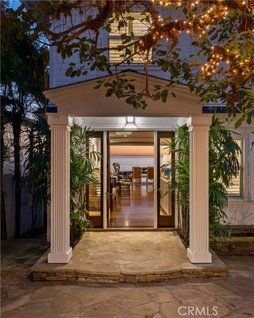 A truly one-of-a-kind oceanfront offering. This private North Laguna Beach estate sits prominently on a rare bluff-top site with direct beach access to one of California’s most picturesque coves. Set behind a secure, custom wood gate and an impressive 50-plus-foot-wide frontage, the property offers exceptional privacy. Enter through the gate and past the detached garage, where lush tropical landscaping and an inviting courtyard immediately transport you to an atmosphere of island-inspired serenity. Upon stepping through the glass entry door, the panoramic ocean views make an unforgettable first impression. Inside, the home continues its relaxed-yet-refined coastal character with crisp, classic styling, hardwood floors throughout, thoughtfully curated wall coverings, custom built-ins, and tailored moldings. The main level features an ocean-view dining area that opens to a generous living room with sweeping ocean vistas and an oversized stone fireplace. The adjoining gourmet kitchen is anchored by custom stone surfaces, high-end appliances, and direct access to both the courtyard and garage. Upstairs, the primary suite enjoys a private ocean-view balcony and a spacious en suite bath. Two additional secondary bedrooms complete the upper level. Below the main floor, a lower-level bonus/bunk room with full bath offers the perfect space for beach-day cleanup, children’s activities, or overflow guests. From the main living areas, multiple bluff-top terraces draw you outward toward the ocean, each providing a front-row vantage point to Crescent Bay Beach. With Twin Points to the south, Seal Rock to the north, and Catalina Island directly ahead, the views are nothing short of spectacular—an ever-changing canvas of light, water, and coastline. This is a setting that embodies the very essence of the Southern California lifestyle: restorative, luxurious, and effortlessly connected to the natural beauty that surrounds it. This estate represents an exceptionally rare chance to own—and elevate—one of North Laguna’s most iconic oceanfront properties.