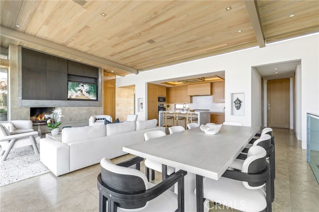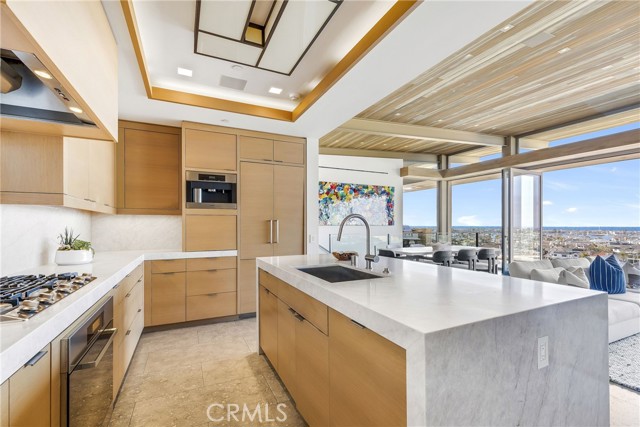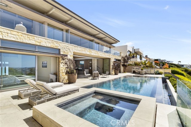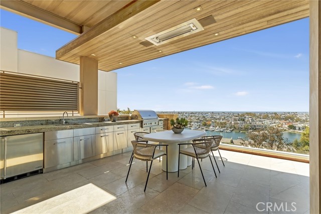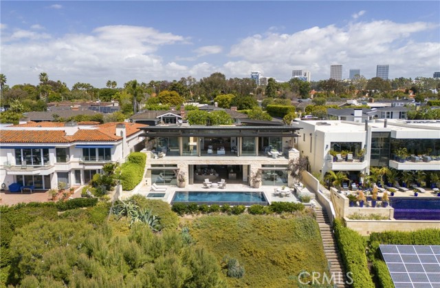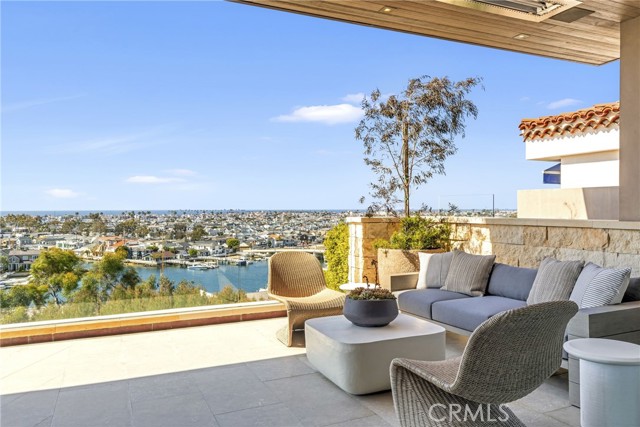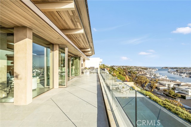 This unparalleled custom residence in the sought-after enclave of Irvine Terrace delivers the pinnacle of contemporary coastal luxury, commanding front-row views of Newport Harbor, Balboa Island, the Pacific Ocean, and Catalina Island. The inspiring design reflects the talents of architect Carlton Graham, alongside the craftsmanship of Steve Davidson Construction and Tom Waters. Natural elements that echo the home’s extraordinary setting are seamlessly incorporated throughout the two-level floorplan, encompassing four en suite bedrooms, a total of five full bathrooms, two half bathrooms, and approximately 6,232 square feet of living space. The main level is defined by striking architectural presence, with walls of floor-to-ceiling glass and disappearing doors framing a cinematic harbor panorama animated by passing yachts, fiery sunsets, and shimmering evening reflections across the water. A sophisticated great room with a fireplace and adjoining dining room, seamlessly transitions to a showpiece kitchen appointed with an island, premium appliances, white oak ceilings, and limestone floors and wall accents. The luxe primary suite, privately situated on the main level, is replete with a heated view deck spanning the width of the home and a built-in BBQ bar. The lower level features a dramatic lounge and media room with a full wet bar, a glass-enclosed office, and a temperature-controlled wine cellar with a full-size beverage refrigerator. Accordion doors lead to a terrace boasting an infinity-edge pool, elevated spa, and an outdoor kitchen with a professional-grade grill. With an extraordinary coastal setting and seamless indoor–outdoor design, the home reflects the finest elements of Corona del Mar living in Irvine Terrace, moments from Fashion Island’s world-class retail and dining, Newport Beach Country Club, and the Newport Harbor Yacht Club.