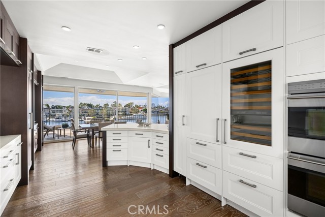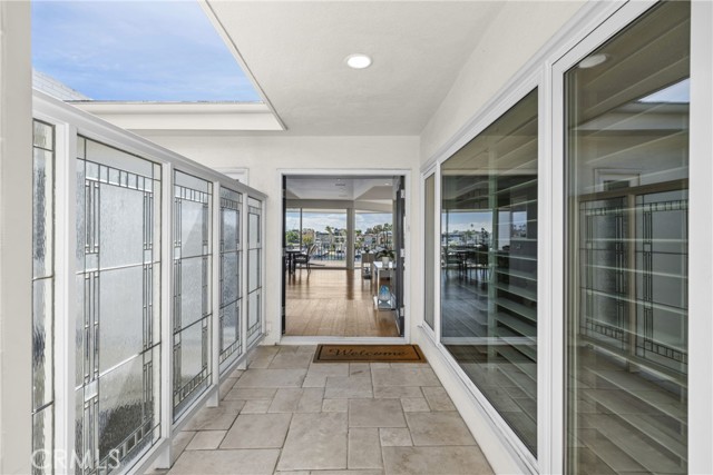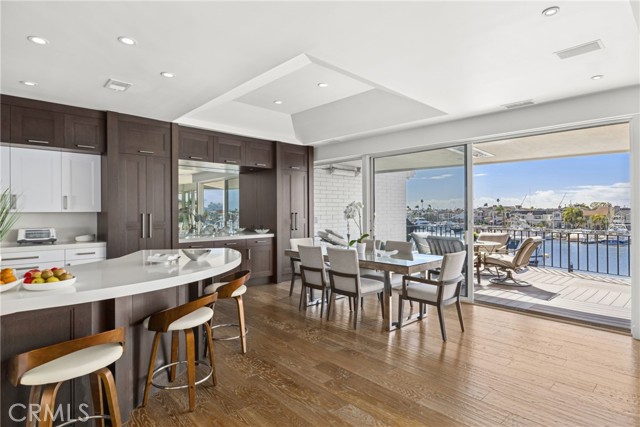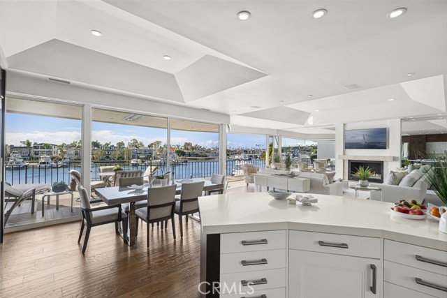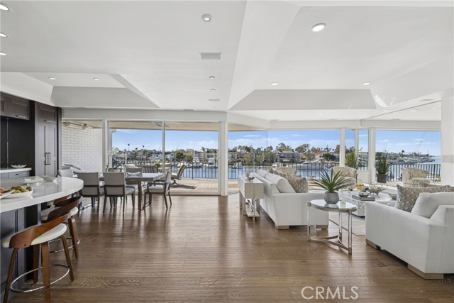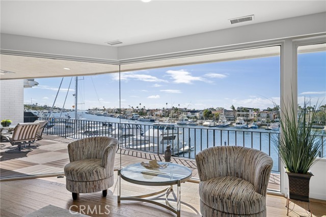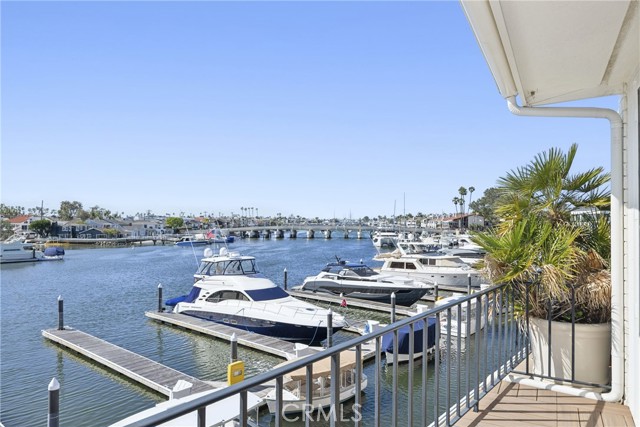 Exceptional bayfront residence offering panoramic, unobstructed harbor views with breathtaking backdrops of Balboa Island Canals, the Jetty, and the Pacific Ocean. Privately positioned behind a secure gated entrance, this single-level living residence captures approximately 180-degree water views with no moored boats directly in front, preserving a rare and uninterrupted waterfront perspective in Newport Beach. Remodeled with refined coastal finishes, the residence features soaring ceilings, wood flooring, and expansive walls of glass that frame the harbor from the kitchen, living room, and dining room. The living room features a fireplace and opens seamlessly to a covered waterfront deck with overhead heaters, creating an ideal setting for year-round indoor-outdoor living and front-row views of Newport’s iconic boating activity and seasonal festivities. The sprawling kitchen is appointed with quartz countertops and full-height marble backsplash, custom cabinetry with abundant storage, induction Wolf range, double ovens, wine refrigerator, microwave, dual refrigerator drawers and dual freezer drawers, and a breakfast bar, all thoughtfully oriented toward the water. The primary suite is illuminated by a dramatic skylight and offers a walk-in closet and a spa-inspired bath adorned with marble, dual sinks, soaking tub, walk-in shower, makeup vanity, and an additional skylight. The secondary bedroom includes a built-in desk and direct access to a full bath. Additional highlights include electric blinds, LifeSource whole-house filtered water system, finished garage with storage, and one dedicated parking space. A rare opportunity to enjoy sophisticated, single-level bayfront living with unobstructed views in one of Newport Beach’s most coveted waterfront settings.