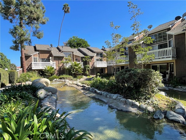 Gorgeous 1bdrm/1ba upstairs condo featuring vaulted ceilings and abundant natural light! This open-concept floor plan offers a modern kitchen with granite countertops, stainless steel appliances, and vinyl flooring throughout. Enjoy peaceful views overlooking the community stream and relax on your private balcony complete with washer/dryer. Includes a 2-car detached garage and access to a sparkling community pool in this gated community.
