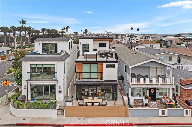 New construction and just steps to the sand, this Newport Beach duplex is not only a testament to modern construction but also a goldmine for those seeking a lucrative investment. Boasting not just one, but two active short-term rental permits, this property offers an unparalleled opportunity to maximize your income potential. The front unit, with its 3 bedrooms and 4 bathrooms, features a gorgeous pivot-entry door, a spacious open-concept living area, a waterfall kitchen island with bar seating, Viking appliances, custom cabinetry, quartz countertops, custom electric shades, a large pantry, and plenty of storage. Enjoy ocean views from the front rooftop deck with a luxurious Jacuzzi, fire pit, and beverage bar. The rear unit, with its private entrance, consists of 2 bedrooms and 2 bathrooms, an open concept kitchen and dining area with custom cabinetry, custom electric shades, quartz countertops, and Viking appliances. The expansive rooftop deck is remarkable, complete with a covered dining area, an outdoor kitchen, a fire pit, and its own indulgent Jacuzzi. With this remarkable duplex, you can enjoy the best of both worlds: a stunning Newport Beach retreat and a steady stream of rental revenue. This property offers several options, including converting the two units into condominiums, which allows them to be sold individually. Newport Beach is truly the best location for a real estate investment, with its endless beaches, famous surf spots, fantastic restaurants, world-class shopping, and easy airport access.