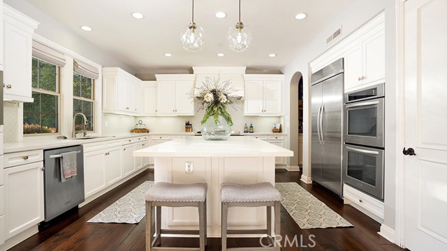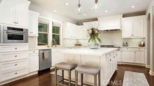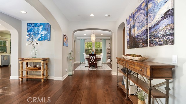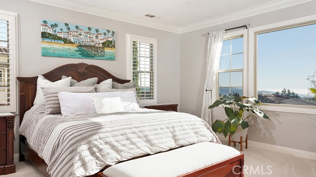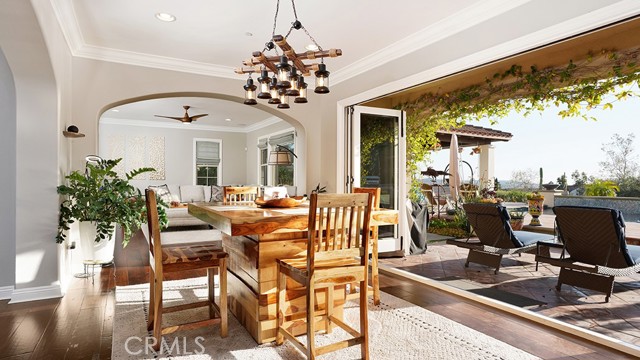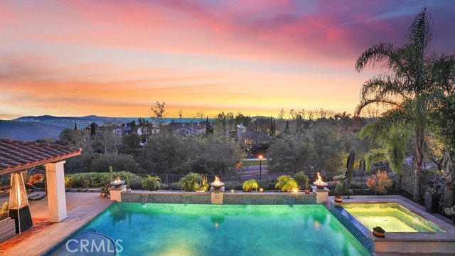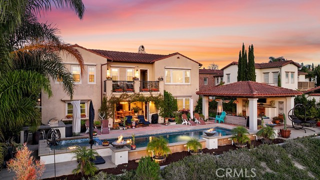 RESORT-STYLE ENTERTAINER'S RETREAT IN TALEGA'S PRESTIGIOUS LUCIA / ALTURA TRACT. Perched at the pinnacle of Talega, 13 Calle Viviana presents a rare opportunity within the gated Lucia Altura enclave—home to only 20 residences and renowned for its commanding hillside and ocean-view trophy lots. Offering exceptional privacy and breathtaking vistas, this 5-bedroom, 5.5-bath residence spans approximately 5,136 sq ft on an 11,230 sq ft lot and feels truly custom in scale and design. The gated courtyard entry welcomes you with a tranquil water feature, outdoor seating area, and expansive grassy side yard. A full-suite casita sits to the left, while a detached third-car garage enhances functionality and privacy. Within the main residence, hardwood floors, graceful arches, crown molding, and custom built-ins define the home’s refined character. The main level is designed for effortless entertaining, featuring a formal living room with fireplace opening to the courtyard, a formal dining room, curated wine display, and a light-filled family room that flows seamlessly into the kitchen. The chef’s kitchen showcases white cabinetry, quartz countertops, a designer tile backsplash, walk-in pantry, dedicated coffee station, and premium KitchenAid appliances. Completing the lower level are a private ensuite bedroom, executive office, powder bath, and direct access to the two-car garage. Upstairs, plush white carpeting leads to two spacious ensuite bedrooms, a versatile loft, and an impressive primary suite. The primary retreat offers custom built-ins, a sitting area, walk-in closet, and private balcony featuring ocean, hills and sunset views. The spa-inspired primary bath presents dual quartz vanities, a stand-alone soaking tub, and walk-in shower. Accordion-style doors open to a panoramic backyard oasis featuring a resort-style pool and spa, built-in BBQ, and a Spanish-style loggia with exposed wood beams and an outdoor fireplace—an extraordinary setting to relax, entertain, and take in some of Talega’s most breathtaking views.