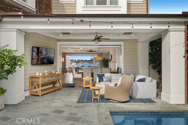 Exquisite panoramic sapphire views are on display from almost every room in this idyllic coastal home. Custom designed by Brandon Architects and completed in 2017 by premier homebuilder Spinnaker Development, this immaculate property has a spacious open floor plan, clean lines, and modern amenities. The luxury residence has a soothing neutral palette of colors and custom finishes throughout, including: a walk-in wine room highlighted with glass walls; custom cabinetry; coffered ceilings; an expansive laundry room with built-in dog bath; and beautiful stone, marble, and tile work. The opulent primary suite with balcony has a prominent location highlighting sweeping views of the bay and the peaceful morning sunrise. Three additional oversized bedroom suites, and office, and an attached four-car garage provide spacious accommodations for daily living, while an interior courtyard with a private pool, spa, and water feature, an adjacent billiard or bonus room with a wet bar, a chef’s kitchen, and a great room opening to a loggia on the sand, all provide the ideal backdrop for relaxing with family and friends. Disappearing doors open up the entire first floor of the home to the interior courtyard and the beach. This exceptional Cape Code inspired home sits on one of the largest bayfront lots on Peninsula Point at 7,424 square feet, a corner lot approximately three times the standard bayfront lot, and has only one neighbor to the west. Its expansive private bay beach and dock fronts the largest width of Newport Bay, providing premium views of summer yacht club races through the harbor and the annual holiday boat parade, as well as ample space to sink your toes in the sand, cool off with a quick dip in the bay, take out a paddleboard, or sail away the day. The dock is approved for up to a 55-foot boat. This is a tremendous opportunity to enjoy the finest in Bayfront living and the coveted Newport Beach lifestyle in close proximity to Balboa Village, luxury retail, fine dining, and world-class beaches.