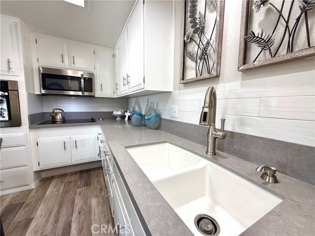 Elegant One-Bedroom Retreat in Mutual 9 Step into a bright, beautifully upgraded one-bedroom, one-bath home in sought-after Mutual 9, perfectly located with drive-up convenience and parking right in front. This expanded unit combines classic Leisure World charm with modern style, featuring new luxury vinyl plank flooring, fresh neutral paint, and a tiled front porch for outdoor enjoyment. Inside, you’ll find a light-filled living space accented by a large electric skylight with a rain sensor, two additional solar tubes, and new energy-efficient windows. Mini-split heat and A/C units in both the living room and bedroom ensure year-round comfort. The upgraded kitchen features all new stainless appliances including a wall oven, cooktop, and refrigerator, enhanced by a subway tile backsplash, quartz countertops, new fixtures, and a large skylight that fills the space with natural light. The bathroom is equally refined, offering a quartz vanity, new fixtures, a new toilet, and a solar tube for soft daylight. A stackable washer and dryer are conveniently tucked into the hallway closet. Enjoy upgraded blinds inside and on the porch, a secure storage closet perfect for a bike or tools, and a welcoming screened entry door that lets the ocean breeze flow through. This home offers the perfect balance of comfort, sophistication, and practicality—ideal for those seeking a turnkey home in one of Leisure World’s most desirable Mutuals. Mutual (Carport 110, Space 3) SENIOR COMMUNITY-OFFERS THE FOLLOWING AMENITIES: 9 Hole Golf Course, Swimming Pool, Jacuzzi, Gym, Table Tennis, Shuffle Board, Billiards, Pickle Ball, and Bocce Ball courts. Amphitheater, 6 Clubhouses featuring: Art Room, Sewing, Crafts, Wood Shops, Lapidary, Pool Tables, Over 200 Clubs, LWSB is a Security-Guard-Gated Community. Also Library, Friends of Library Bookstore, Credit Union, Health Care Center, Pharmacy and Post Office.