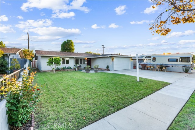 Sharp and spacious single-story home in a prime Anaheim location! Lovingly maintained, this residence features an upgraded kitchen with quartz countertops, soft-close cabinets, and pull-out pantry shelves. Fresh paint, new carpet, and beautiful linoleum flooring create a move-in ready feel. The primary suite includes its own bath, accompanied by three additional bedrooms and a hall bathroom. Upgraded windows, newer front and back doors, an extra-wide driveway with RV potential, an EV charger, and an upgraded electrical panel add convenience and value. The main sewer line has been lined for peace of mind.Enjoy a large backyard with mature citrus trees, a covered and enclosed patio, plus a unique fallout shelter. Out front, the pretty slate stone entry and covered patio provide the perfect spot to relax. Homes like this don’t come along often—don’t miss this opportunity!