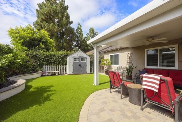 Nestled in the highly popular Irvine community of The Colony, this beautifully upgraded one story offers 3 bedrooms, 2 bathrooms, 1,380 SF & a layout that flows with ease offering the ideal combination of function, comfort & charm. Step inside to discover a bright & airy living space with soaring ceilings & an abundance of natural light. The thoughtfully designed kitchen boasts granite countertops, custom cabinets, stainless appliances & an extra long peninsula with bar seating. The spacious primary suite has a walk in closet with dual sinks, a vanity & a walk-in shower with 3 shower heads. Other upgrades include bamboo flooring, jetted soaking tub, tankless water heater, crown molding, a whole house fan & a pull down ladder in the garage to attic storage that runs the length of the whole house. Whether hosting a barbecue or soaking up the sun, the outdoor space offers endless possibilities with a built-in BBQ, an Alumawood patio cover with recessed lights, ceiling fan & outdoor heater, a low maintenance yard & multiple fruit trees. Ideally situated down the street from a 7.5-acre park that includes the award-winning College Park Elementary School, playgrounds, volleyball court, tennis & basketball courts & plenty of space for outdoor activities. Residents of this community also enjoy access to 3 swimming pools & a clubhouse, as well as the convenience of being close to freeways, Trader Joe's, Starbucks, restaurants & shopping.