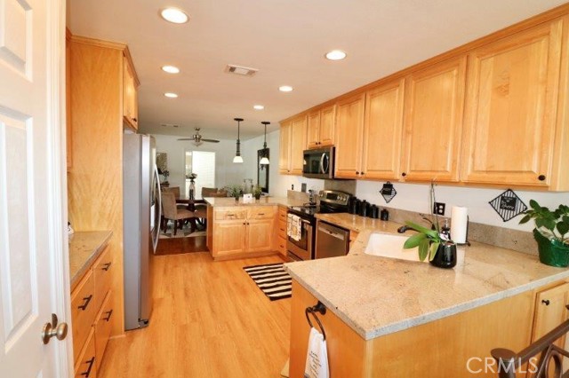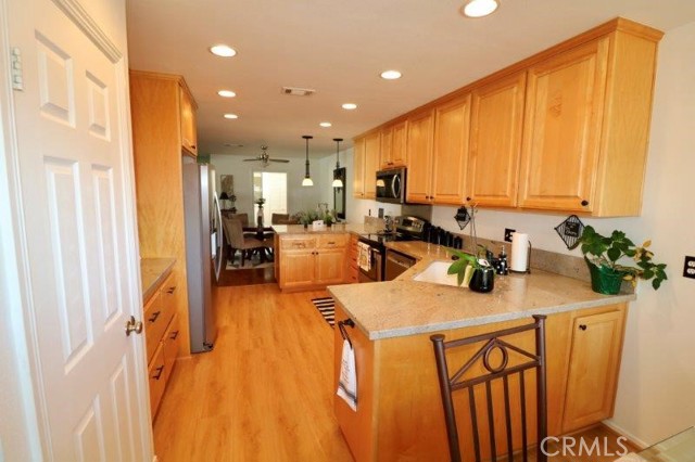 Senior Living 55 + Beautifully updated home-Move in Ready!Welcome to this spacious 2 Bed, 2 Bath remodeled home with an inviting open layout that blends comfort and style. Light airy, and spacious the moment you walk in. Vaulted beam ceilings, open living room and dining room area are perfect for entertaining, Remodeled kitchen with modern updates and gorgeous granite counter tops. Cozy office for work, hobbies or extra space. Glass sliders off the living room to your private patio, ideal for outdoor relaxation. Charming fenced yard with gate prefect for pets or gardening. Located just steps away from the greenbelt with a peaceful, park like setting. Comes with 2 car attached garage with remote access. This home offers a prefect blend of comfort and convenience in a desirable location and community setting. Enjoy the amenities Lake Park Santa Ana North has to offer. Heated pool, spa, exercise room, library, and a billiard room. 5-star community. Call today to schedule your private tour or stop by the clubhouse!