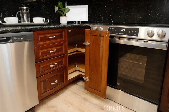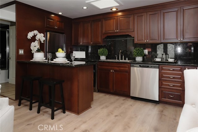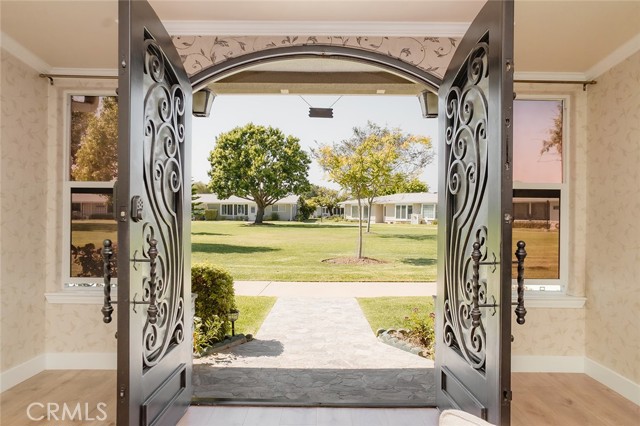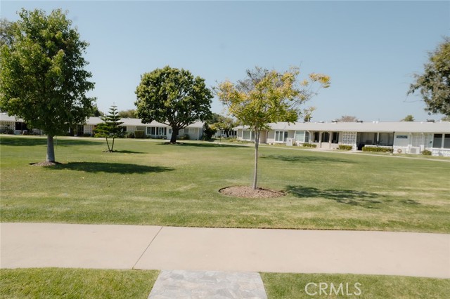 An absolutely elegant and pristine one-bedroom; one bath unit that sits at center location on a large, wide green belt in lovely Mutual 2. When you enter this home, it will be a "WOW" unveiling for any buyer. This home is fully extended, offering more living space than other one-bedrooms, with ultimate privacy and a tranquil, unobstructed view from all windows. Enter from your paver walk path through a uniquely designed steel Double Door with etched tempered glass and ornate iron designs that frame this incredible home. Your interior features ALL NEW high-grade vinyl plank flooring with 5" Baseboards throughout, top quality custom Silk Wall Lining, tinted Dual Pane Windows for privacy and Smooth Ceilings finished with crown molding throughout unit. The upgraded Kitchen features custom cherry cabinetry, granite counters, stainless double sink and fixture, and ALL NEW Stainless Appliances including a GE slide-in oven, GE Dishwasher, Microwave Oven and a LG Refrigerator and a BONUS of a NEW Built-in Mini Beverage and Wine Cooler Refrigerator. Additionally, you have a large Pantry Cabinet with pull out shelves, a Lazy Susan Cabinet for Pots & Pans and undercounter cabinets on the breakfast island provide lots of additional storage. The Kitchen and Living Room have Velux Automatic Electric Skylights bringing in light and airflow. Bathroom features tub/shower combination with clear glass and granite stone walls Granite counter, Skylight and a NEWER GE stackable front-loading Washer/Dryer. Large extended Bedroom has Bay Dual Pane Windows overlooking your greenbelt and walk-in closet with additional pocket entrance door into living room area. The bedroom in large enough for a desk or hobby area without feeling crowded. Exterior of unit has stacked stone (no cinderblocks!) THIS IS A BEAUTIFUL UNIT worth the look fulfilling all the checkboxes! Your parking is in ***CARPORT BLDG. 26 Space 43************** This area in Mutual 2 has lots of guest parking too. Close to Southgate entrance/exit to walk to restaurants, shopping, and banks. This is a 55+ SUPER ACTIVE RETIREMENT COMMUNITY w/24-hour guarded-patrolled security, 200+ activity & Social Clubs, Swimming, Spa, 9 Hole-Golf Course, Fitness Center, Sport Court, Billiards, Amphitheater features summer concerts & holiday events, 6 Clubhouses, Health Care Center, Pharmacy, Post-Office, Car Wash, Art & Ceramics Room, Wood Shop, Bus System, Library, Day & Overnight Excursions and more! **********************