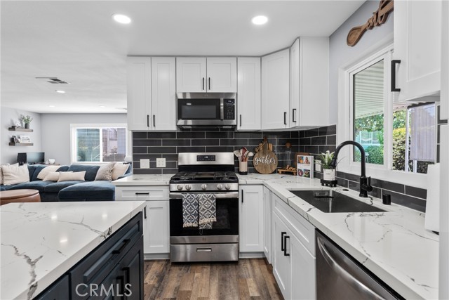 Welcome to Lake Park Yorba Linda. A highly desirable 55+ senior community known for its serene, park like setting, picturesque lakes, and inviting clubhouse. Perfectly situated just minutes from shopping, dining, and freeway access, this location offers the ideal blend of tranquility and convenience. This beautifully maintained home is a must-see! Featuring 2 bedrooms, 2 bathrooms, and an additional multipurpose room ideal for a private office, hobby space, or extra storage, this residence spans approximately 1,440 square feet and is ideally positioned on a single-loaded street, providing enhanced privacy and minimal traffic. Step through the spacious covered porch into a bright, open concept living and dining area filled with natural light and finished with designer paint tones that create a warm, welcoming ambiance. The home’s tasteful décor and farmhouse charm make it feel cozy, fresh, and move-in ready. The remodeled kitchen is a true highlight showcasing custom white cabinetry, quartz countertops, a subway tile backsplash, newer gas range, stainless-steel microwave, dishwasher, and a large center island perfect for casual gatherings and entertaining. A sliding glass door leads directly to the covered porch, making it easy to enjoy the peaceful surroundings. Both bedrooms are generously sized, with the primary suite offering a walk-in closet and a fully updated en-suite bathroom featuring dual vanities, stylish lighting, and a walk-in shower with modern finishes. Additional features include: Laundry room, Ceiling fans throughout, Luxury plank flooring, Fresh interior paint, Newer slider and dual-pane windows. Enjoy the best of comfort, style, and community living in Lake Park Yorba Linda a wonderful place to call home. So many community amenities to enjoy including pool, spa, clubhouse, banquet room, library, exercise room, RV Parking, and much more. This turnkey property is ready for you to move in and start your next chapter!