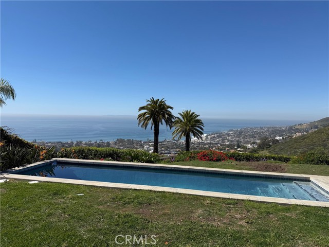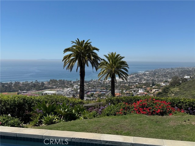 Laguna Beach is known for having wonderful views, but few are as breathtaking as the one from this home. Available for sale for the first time since being built from the ground up, the architectural design of the home is as stunning as the magnificent scenery that surrounds it. Located on the north side of Temple Hills with no homes directly in front, the views of the coastline, Catalina Island, and serene hillsides create a restful sanctuary. Designed by Michael Patrick Porter the home is distinctly modern, with concrete floors throughout except for wood stairs between levels, towering windows and doors that let nature in, and marble and stainless-steel appointments. The ground floor has a very open living, dining and kitchen area with a focal point fireplace, a guest bedroom, a large office/3rd bedroom, separate laundry room and a bathroom. Upstairs is devoted to the primary bedroom suite that has a relaxing fireplace, beautiful bathroom and a separate room with the meticulously planned walk-in closet. There is a walled carport for two cars and underneath it, a utility room with the pool equipment and other storage. The surrounding gardens and in-ground pool add more ways to find peace in this unique setting. Take a look at the virtual tour.