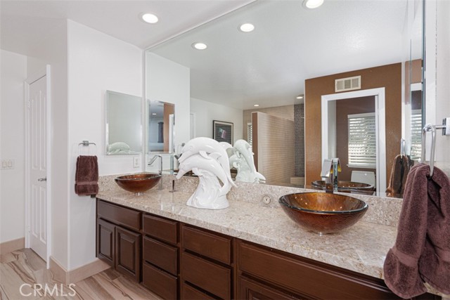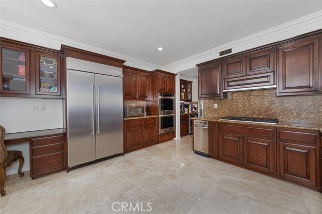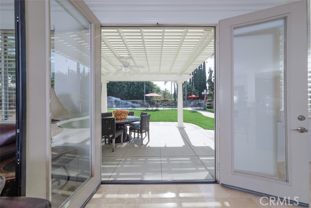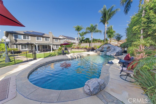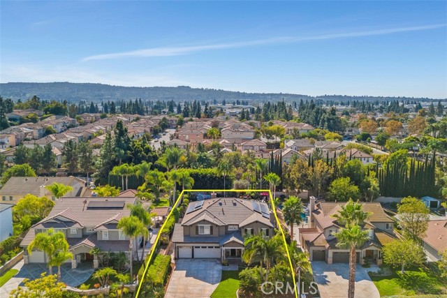 Welcome to this stunning FORMER MODEL HOME in the coveted Neff Ranch community of Yorba Linda. Spanning 3,893 sq ft, this 6-bedroom, 4.5-bath residence sits on an expansive approximately 13,106 sq ft lot, blending spacious design, timeless elegance, and modern comfort. As soon as you enter, you’re welcomed by a grand two-story foyer that sets the tone for the home’s open and inviting layout. The main level showcases beautiful hardwood and travertine flooring, plantation shutters, crown molding, and wainscoting in the living and dining rooms. The family room features built-in surround sound, complemented by outdoor speakers that extend the entertainment experience to the backyard. The gourmet kitchen offers newer KitchenAid appliances, an oversized walk-in pantry, and a bright breakfast nook. A downstairs en-suite bedroom and a laundry room complete this level. Upstairs, the expansive primary suite includes a large walk-in closet with built-in organizers and a renovated bathroom featuring a walk-in shower with dual shower heads and a soaking tub. The secondary bedrooms with walk-in closets are generously sized, including a large en-suite bedroom that can serve as a junior primary suite. The massive backyard is designed for entertaining. A covered patio with a ceiling fan offers a shaded retreat, while the sparkling pool with a rock slide and a waterfall flowing into the spa creates a private resort-style atmosphere, perfect for relaxing or hosting gatherings. Additional highlights: newer AC units, a water softener system, a tankless water heater, and solar panels for enhanced comfort and efficiency. Located on a cul-de-sac street within the award-winning Placentia-Yorba Linda Unified School District, this home offers easy access to walking trails, community parks, shopping, dining, and freeways. NO HOA and NO Mello-Roos. Don’t miss the opportunity to make this remarkable home yours!