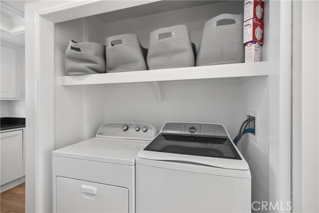 Tucked away in the serene community of Morningside Terrace, this two-level unit offers privacy with no units above or below. New LVP flooring and paint throughout, the floor plan is both functional and inviting, with living and entertaining areas separated from the upstairs bedrooms. The home features a newer water heater and includes a newer washer and dryer as well. The kitchen offers spacious counters and an inviting bay window. The open concept living and dining areas lead to a private patio to the rear. Upstairs, the primary bedroom offers a peaceful escape with balcony and private access to a full bathroom. A second generously sized bedroom boasts great natural light and makes for a perfect guest room, home office, or kids’ space. Ideally located, this home places you within walking distance to Costco and the Marketplace at Laguna Niguel—which includes a Pavilions grocery store, Walmart, and plenty of other retail and dining options. Whether you're starting a new chapter or looking for a place to grow, Morningside Terrace combines peaceful living with unbeatable access to everyday essentials.