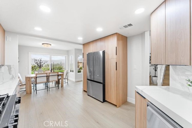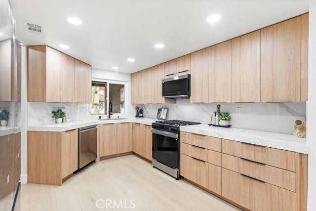 Turnkey townhome with sweeping panoramic views of Saddleback Mountain and Oneill Park, and rare private backyard! Welcome to 19 Vista Barranca #75, Rancho Santa Margarita—a beautifully upgraded and move-in ready end-unit townhome in the sought-after Vista La Cuesta community. With just one attached neighbor, this residence offers the privacy and feel of a single-family home. Featuring 2 bedrooms + loft, 2.5 baths, and approx. 1,291 sq ft, this home has been thoughtfully renovated throughout. The light-filled main level showcases a modern kitchen with updated cabinetry, Quartz countertops, and stainless steel appliances, a spacious living room with fireplace, and a formal dining area that opens seamlessly to the outdoors. Step outside to enjoy the generously sized backyard—a rare find in this community—perfect for entertaining, gardening, or simply taking in the tranquil mountain and park views. Upstairs, the versatile loft offers space for a home office or playroom, while both bedrooms feature upgraded baths and plenty of storage. Additional highlights include : Inside Laundry room, New Central Heat & Ac include new ducting, Repiping, New Water Heater, Tasteful designer finishes throughout. Community amenities include a pool, spa, clubhouse, tennis, pickleball, trails, playground, and BBQ areas, plus access to RSM Lake and Beach Club just across the way. With its turnkey upgrades, spacious private yard, and end-unit privacy, this home is a standout opportunity in Rancho Santa Margarita.