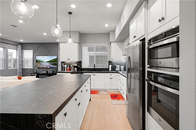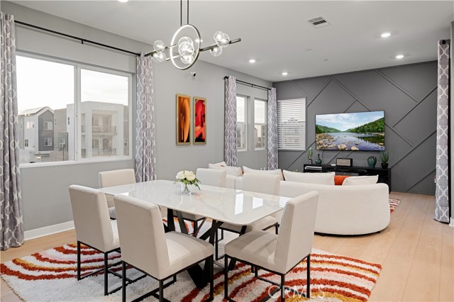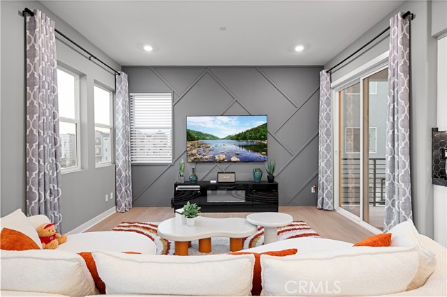 Welcome to Your Dream Home in the Solis Park Neighborhood of Great Park! Discover this stunning 3-bedroom, 3.5-bathroom condo with an additional loft, offering a flexible 4th-bedroom option. Boasting 2,647 sq. ft. of living space, this 3-level home combines modern design with thoughtful functionality. Step inside to find beautifully painted walls that add character and charm to every room. The bright and airy interior is bathed in natural light from abundant windows, creating a warm and inviting ambiance. On the second floor, you’ll find an open concept kitchen and family room, perfect for entertaining. The kitchen features a large island with seating, stainless steel appliances, and direct access to a private balcony. This floor also includes a bedroom and full bathroom, offering convenience and versatility. The third floor is home to the luxurious primary suite, complete with a spacious en-suite bathroom, walk-in closet, and serene ambiance. Adjacent to the oversized loft, ideal as a fourth bedroom or additional living space, you’ll find another bedroom, full bathroom, and a convenient laundry area. Additional highlights include an oversized garage with a workshop area, a whole-house water filtration system, and fully paid solar panels, providing modern sustainability and added value. Residents of Solis Park enjoy access to an array of resort-style amenities, including a swimming pool, spa, clubhouse, playgrounds, picnic areas, tennis courts, parks, and scenic walking and biking trails. This home is ideally located near top-rated schools, major freeways, and popular destinations like Irvine Spectrum and John Wayne Airport. Don’t miss your chance to call this exceptional property your home—schedule a viewing today!