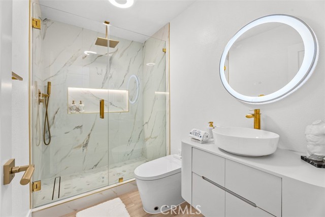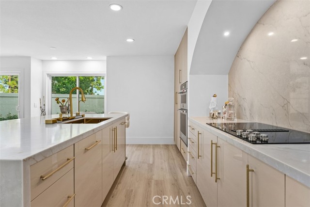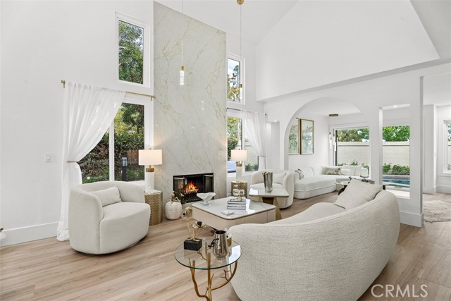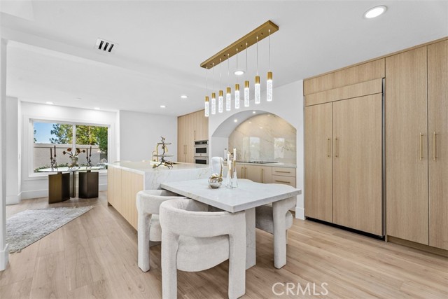 Completely reimagined and move-in ready! This stunning Laguna Niguel estate sits at the end of a quiet cul-de-sac and has been masterfully remodeled and designed by a renowned European designer, showcasing exceptional craftsmanship and attention to every detail. Featuring 3 spacious bedrooms and 2.5 designer bathrooms, this home blends modern European elegance with California coastal comfort. Step inside to an open, sun-drenched floor plan filled with natural light, wide-plank flooring, and custom recessed lighting. The living room features a breathtaking modern fireplace wrapped in the same quartz as the kitchen countertops, creating a seamless, designer-inspired focal point that radiates warmth and sophistication. A stunning chandelier adds elegance to the formal dining area, perfect for both everyday living and entertaining. The all-new chef’s kitchen is a true centerpiece — featuring KitchenAid stainless steel appliances, custom European-style cabinetry, premium quartz countertops, and a large center island ideal for gatherings. The remodeled bathrooms are spa-inspired, offering frameless glass showers, designer tile, and elegant vanities. Enjoy year-round comfort with a new HVAC system, upgraded electrical, energy-efficient solar panels, and a Tesla charging station in the garage. The Bosch washer & dryer are included, and the two-car garage provides generous storage space. Step outside to a beautifully landscaped backyard with a sparkling pool and spa, surrounded by lush greenery — perfect for enjoying the Southern California indoor-outdoor lifestyle. Conveniently located near award-winning schools, parks, shopping, and world-class beaches, this rare, turn-key Laguna Niguel masterpiece perfectly combines design, comfort, and luxury living!