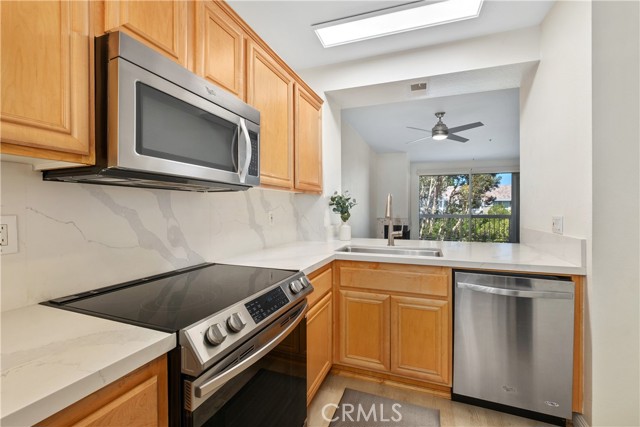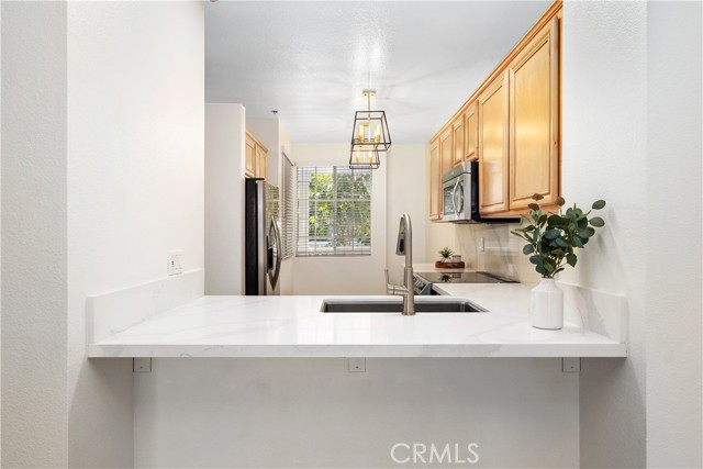 Welcome to Seabridge Villas, where resort-style living awaits you less than 2 miles from the beach. This delightful 2 bed, 2 bath en suite condo has been remodeled. Upgraded bathrooms, new flooring, high-quality carpeting, ceiling fans, and indoor laundry are just a few of the remarkable features this unit offers. Additionally, the unique office space provides the perfect work-from-home convenience. Step into your remodeled kitchen, featuring stainless steel appliances, and quartz countertops. The breakfast bar seamlessly connects to the inviting dining area and living room complete with cozy fireplace. Sliding glass doors lead to a balcony overlooking the pool area and tranquil community waterfall features, providing a peaceful outdoor retreat. Elevator access from the ground level provides easy access to your front door. Seabridge Villas presents a stunning private gated community, complete with a dedicated 24-hour guard service. Residents can take advantage of the abundant amenities, including two pools, clubhouse, gym, sauna, tennis courts, enchanting streams, cascading waterfalls, and an abundance of trees. With its prime location just minutes away from the Huntington Beach Pier, downtown area, and Pacific City, you'll enjoy easy access to an array of dining establishments, shopping centers, highly acclaimed schools, entertainment options, and much more.