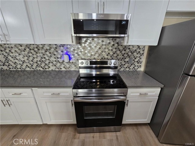 Ready to Rent! Beautifully updated from top to bottom. Perfectly situated in a prime location, this condo harmoniously blends modern sophistication with tranquil surroundings to offer an exceptional lifestyle. Enjoy an expanded layout designed for optimal storage and counter space, featuring sleek cabinetry, premium countertops, and stainless-steel appliances. The kitchen flows effortlessly into a spacious living area ideal for both entertaining and everyday relaxation with a brand-new AC/Heating wall unit. Warm wood-style flooring, recessed lighting, and designer paint create a cohesive and inviting ambiance throughout the home. Step onto your private balcony with peaceful views perfect for unwinding after a long day at work. A discreet laundry closet is conveniently tucked away on the balcony for added functionality. The spacious master bedroom offers calming creek views and the soothing sounds of nature. A generous walk-in closet accommodates all your wardrobe needs, while the spa-inspired bathroom features a modern vanity, tub, and shower. Rent includes water, sewer, trash, and exterior maintenance, simplifying your lifestyle. 1 Car detached garage with an additional assigned parking spot will be included. Enjoy quick access to freeways and toll roads, top-rated schools, premier shopping, dining, and entertainment. Nearby walking and biking trails, LA Fitness, and Lake Forest Sports Park complete the picture. Don't miss this incredible opportunity to rent a unit that truly has it all.