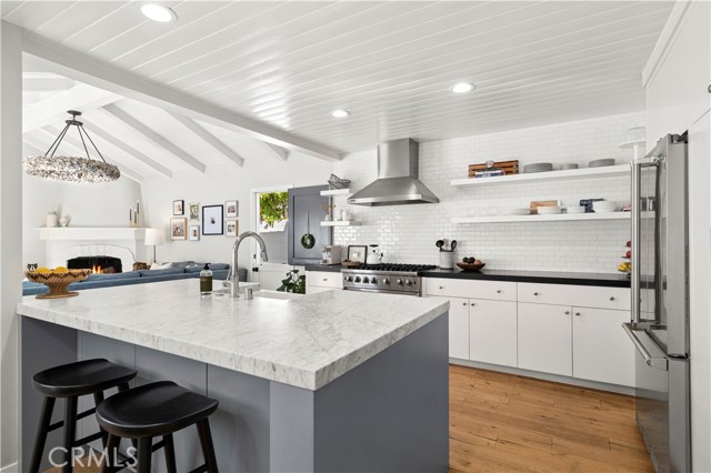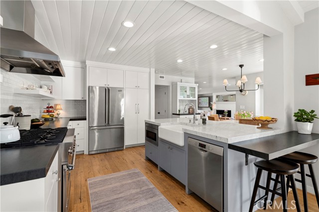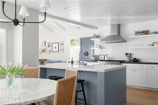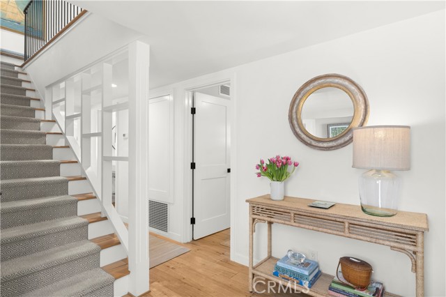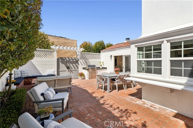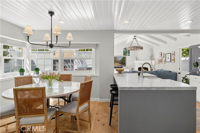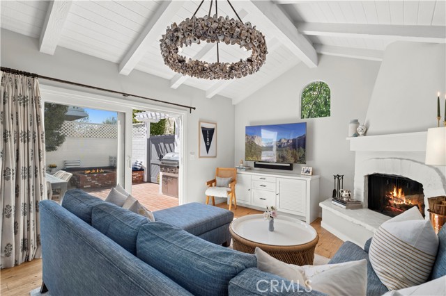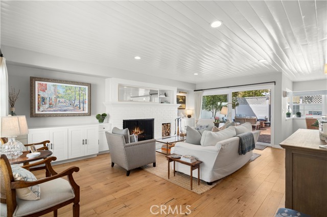Welcome to 213 Via Mentone, a mid-island gem in the heart of Lido Isle, offering four bedrooms and three baths in 2444 square feet of elegant living space. Completely remodeled in 2018, this residence is replete with natural light throughout, an open, inviting floor plan, and impressive indoor and outdoor entertaining spaces, all strategically positioned on an oversized, street-to-strada 40-foot lot. The charming brick walkway curves to the hidden front Dutch door – step inside to a stunning living room with original wood-burning fireplace, new built-ins and custom shiplap ceilings. The guest bedroom and ¾ bath are found on the first floor, as is the gorgeous Chef’s kitchen, featuring a Viking Pro range, oven, and refrigerator, as well as Bosch and Sharp appliances. The spacious marble island centers the room and offers a breakfast bar and hidden microwave. Adjacent is the inviting family room, with a soaring ceiling, additional wood-burning fireplace, and stunning oyster-shell chandelier. Another Dutch door leads to the side yard and strada, while sliding glass doors open onto the patio, completely re-imagined in 2020. Here you’ll find a built-in barbecue and large fire pit with seating as well as plenty of room for dining al fresco. Custom double doors offer privacy when desired and open onto the lush backyard, complete with white picket fence. Upstairs, private living spaces include the Primary Suite with custom built-in closets and an en suite bath. Two additional bedrooms are bathed in light and feature large windows, open to fresh ocean breezes. An added full bath offers a double vanity and tub/shower combo. Luxury fixtures and finishes, new wood floors throughout, custom storage cabinets, and a singular attention to detail in this updated coastal home create a turn-key opportunity for the discerning buyer. Enjoy private beaches, docks, and parks, tennis, basketball and pickleball courts, the Lido Island Yacht Club, endless stradas, and a clubhouse all dedicated to the enjoyment of life within this special island community. A short distance to Lido Village, the surrounding shops and restaurants, and endless white sand beaches ensure an idyllic lifestyle in the most desirable neighborhood in Newport Beach.